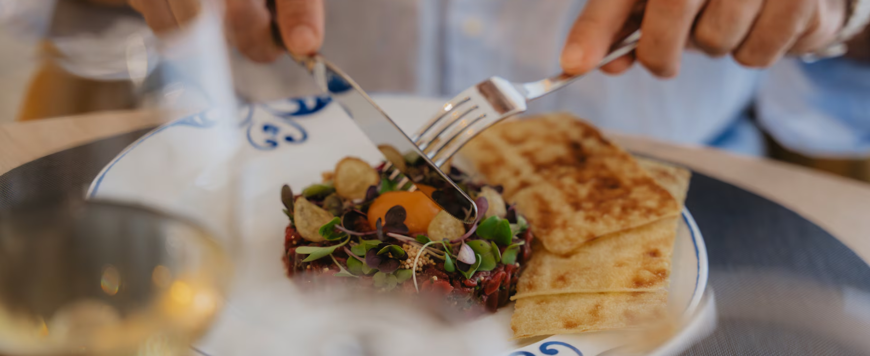 Наш ресторан GUST вирізняється своєю винятковою кулінарною пропозицією, зосередженою на середземноморській кухні , яка підкреслює свіжість та різноманітність смаків, а також включає сезонні інгредієнти з суші та моря , відібрані на основі їхньої наявності на ринку.