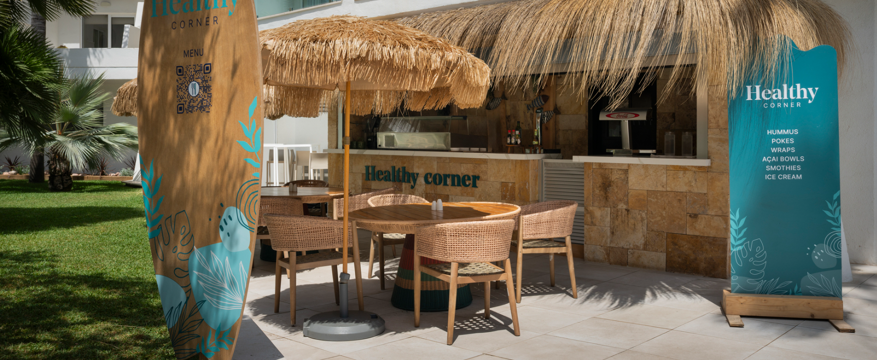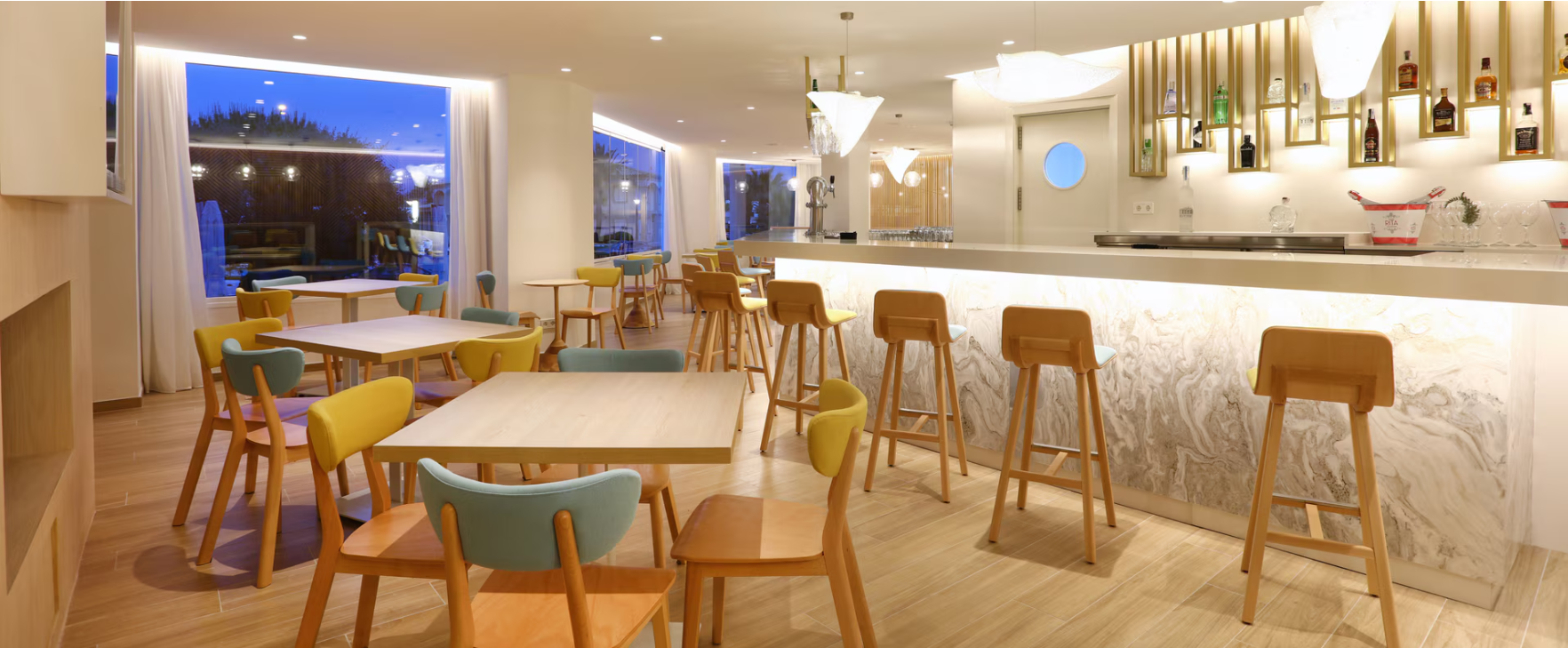 Оберіть з широкого асортименту салатів, страв з рису , італійської кухні, риби та м'яса. Насолоджуйтесь чудовими морськими краєвидами, куштуючи страви наших шеф-кухарів у цьому ресторані, розташованому в готелі Iberostar Waves Playa de Muro . Все, що ви можете побажати, у розслабленій атмосфері та під музику chill-out.