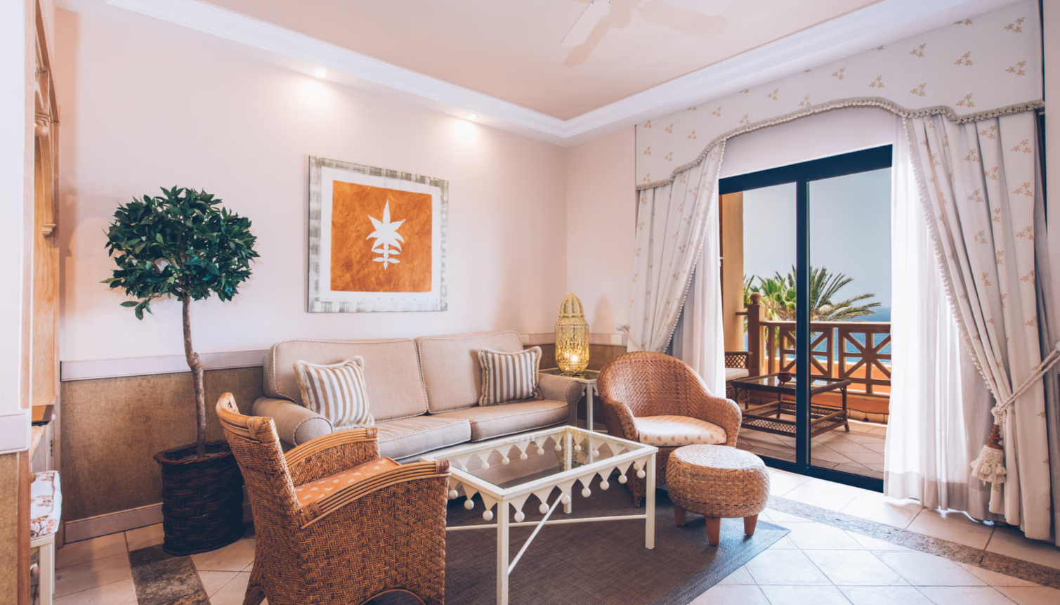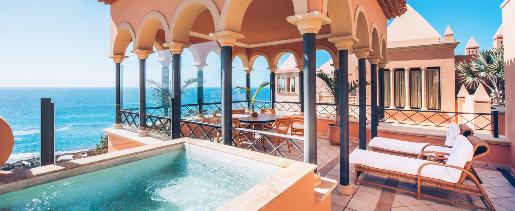 Якщо ви бажаєте зупинитися в одному з найрозкішніших номерів на Тенерифе, оберіть номер Superior Star Prestige Sea View Junior Suite у готелі JOIA El Mirador by Iberostar. Він не лише має простору спальню площею 50 м², але й щоранку прокидається з вражаючим видом на море з вашої приватної тераси площею понад 16 м². Він також пропонує доступ до найексклюзивнішої зони готелю Star Prestige, де ви можете насолоджуватися приватним басейном, сонячною терасою та ексклюзивними послугами.