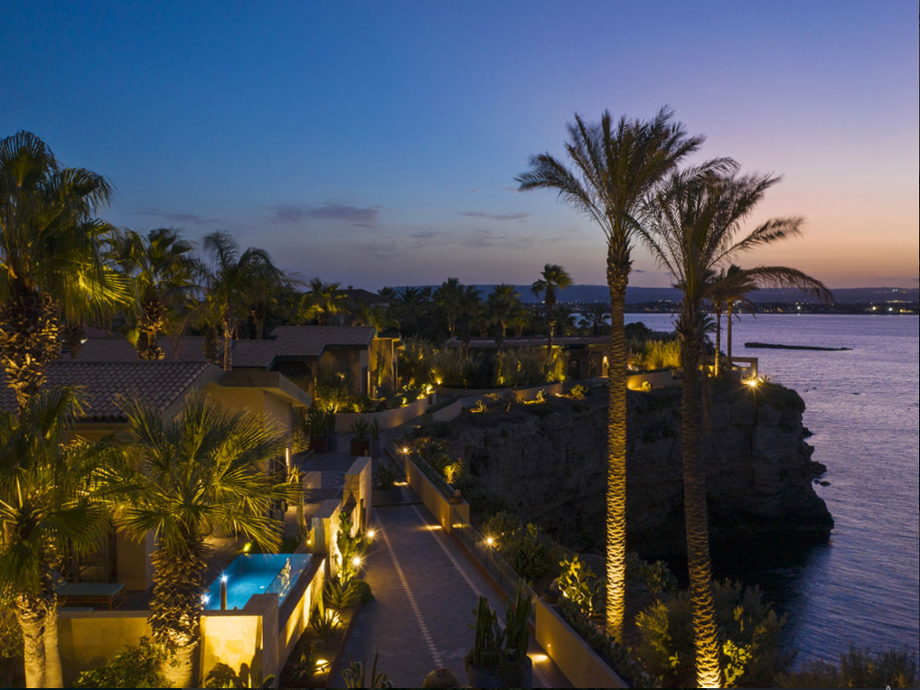 Зовні ви знайдете терасу та приватний солярій з прямим та приватним виходом до моря. Кожна деталь цього люкса втілює гармонію між елегантністю, комфортом та природою: простір, де розкіш поєднується з магією моря, сонця та неба, пропонуючи незабутній відпочинок на прекрасному узбережжі Сіракуз.