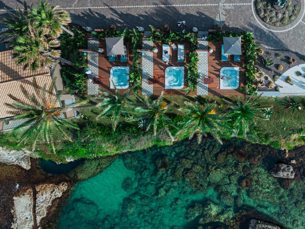 Зовнішній вигляд: Номер має відкриту терасу з приватним панорамним басейном Jacuzzi® з видом на море та острів Ортіджа. Він обладнаний зручними меблями для відпочинку на свіжому повітрі.