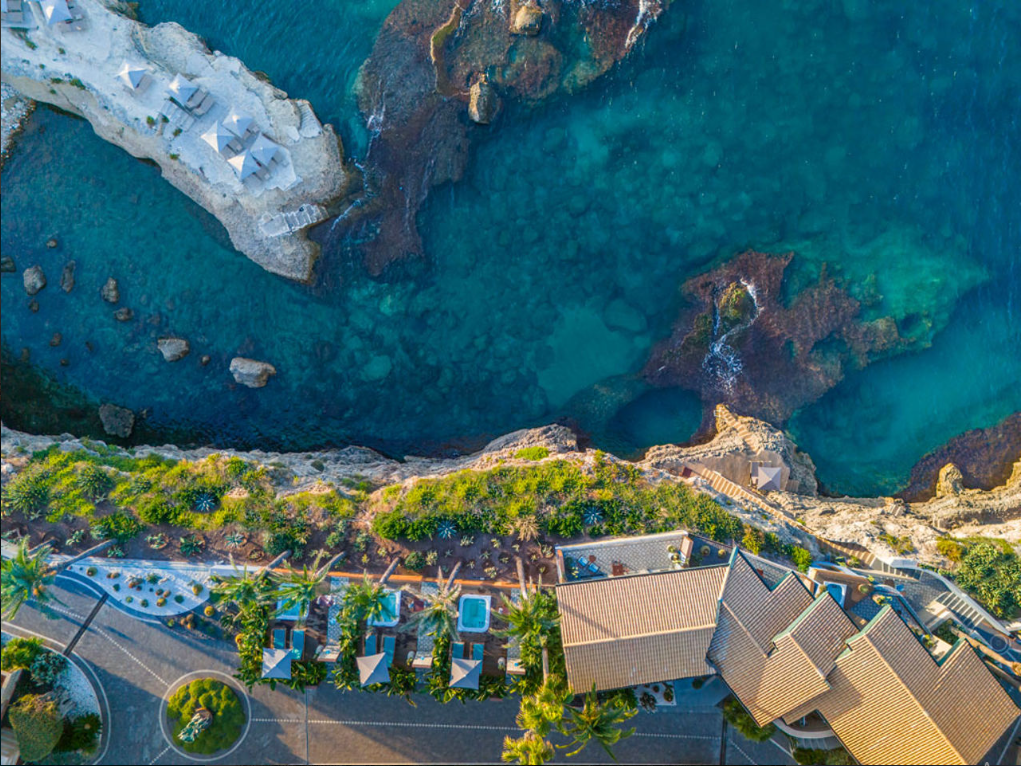 Панорамний президентський люкс – це оазис ексклюзивності та приватності. Унікальна привілегія відрізняє цей люкс: це єдиний люкс, який пропонує прямий доступ до приватної скелі завдяки ексклюзивним сходам, що ведуть до кришталево чистих вод природного заповідника Племміріо. Тут контакт з морем і природою стає інтимним та неповторним досвідом.