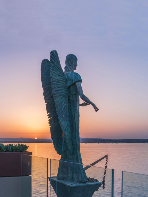 Велике вікно обрамляє ландшафт, пропонуючи унікальний вид на море та острів Ортіджія. Його інтер'єр площею приблизно 85 м² вміщує велику вітальню та спальню, обидві з власними дизайнерськими ванними кімнатами з душовими кабінами та подвійними раковинами, а також оздоровчий куточок, де окремо стояча ванна запрошує вас зануритися в атмосферу, милуючись горизонтом. Великі вікна заливають кімнати природним світлом, щоб створити найяскравіші заходи сонця.