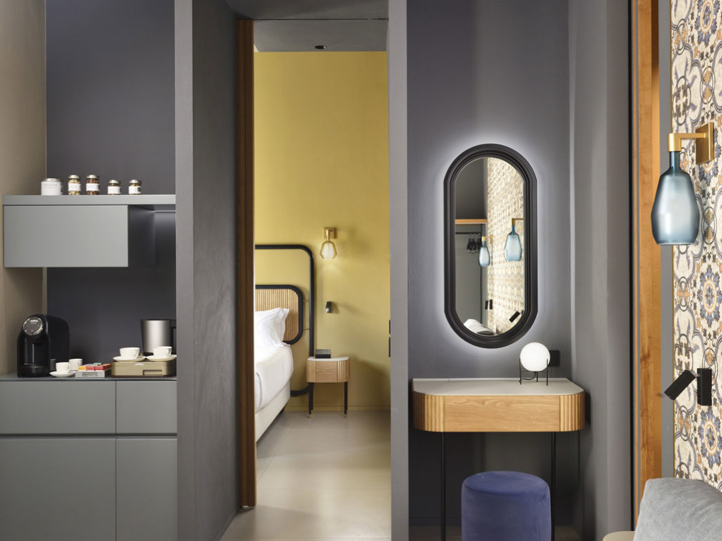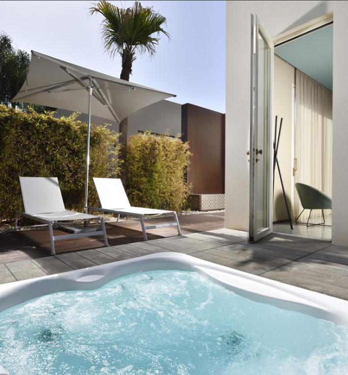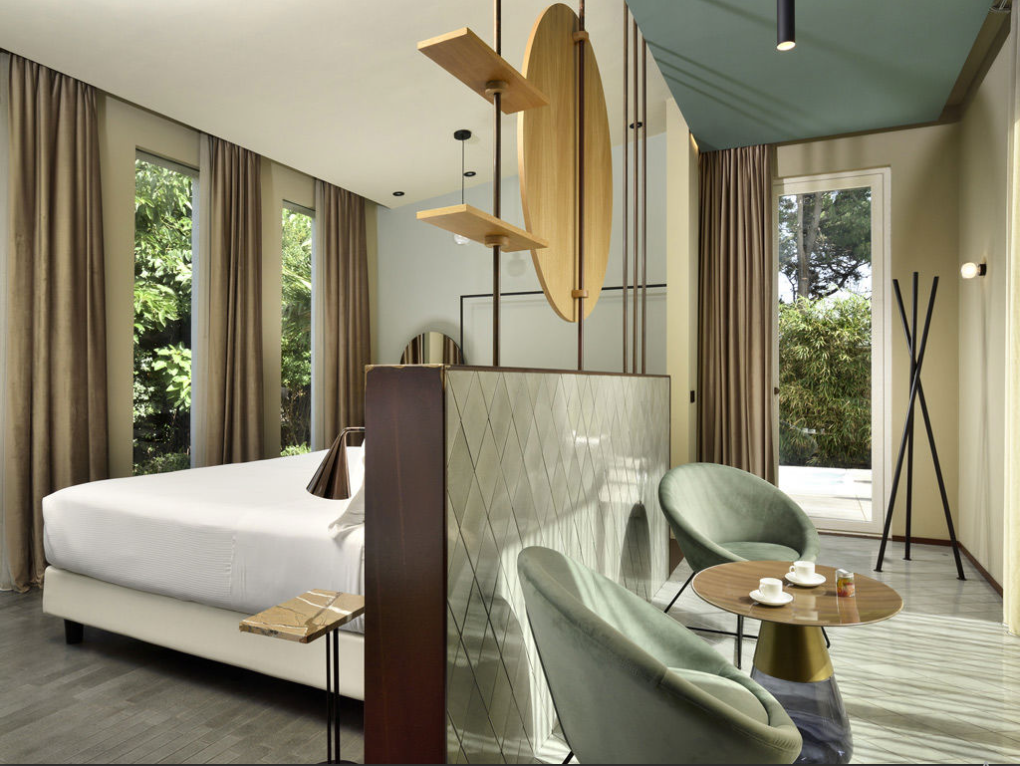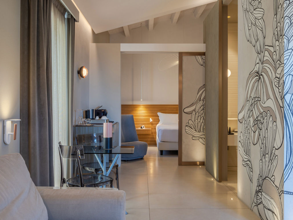 Крім того, гості Olea Suite також мають ексклюзивний доступ до великого басейну з прилеглим солярієм, який використовується лише для трьох інших номерів. Ідеально підходить для пар або сімей, які шукають приватності, Olea Suite має сучасний стиль , який прикрашає деякі історичні «елементи» дизайну Made in Italy, такі як знаменита лампа «Atollo», розроблена Віко Маджістретті для компанії Oluce.