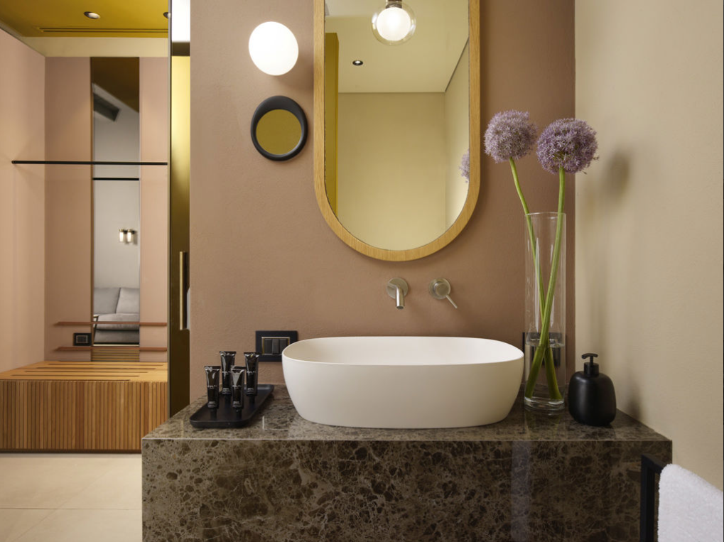 Номер Grand Suite Pistacia, оформлений у вишуканому, романтичному та сучасному стилі, має велику вітальню з диваном-ліжком та кутовим баром ; дві окремі спальні з власними ванними кімнатами, одна з яких має душову кабіну та ванну. Обидві ванні кімнати мають вишуканий дизайн від бренду «Зроблено в Італії» Antonio Lupi, що спеціалізується на дизайні ванних кімнат.