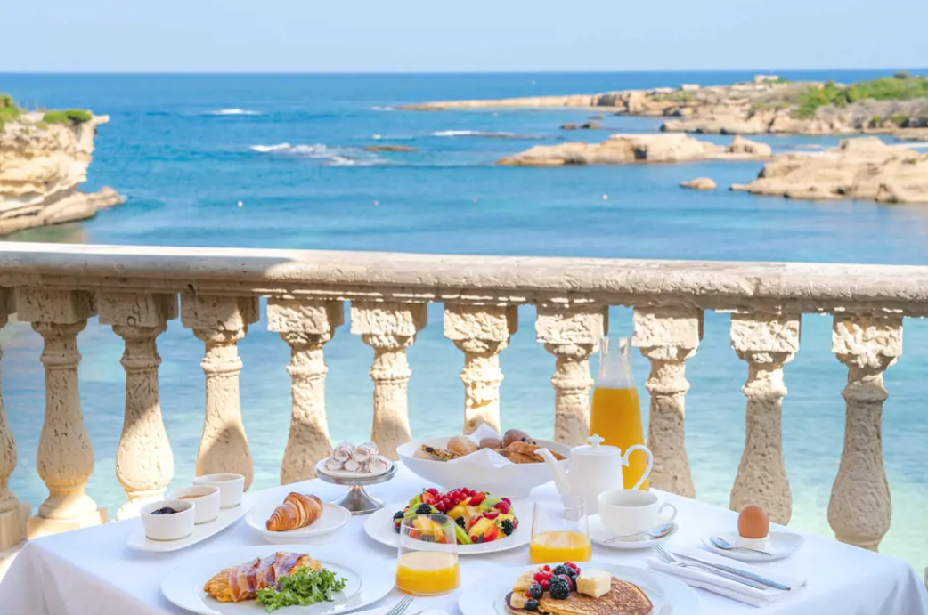 Кухня ресторану Plemmirio Terrace пропонує різноманітні страви на сніданок, обід та вечерю .
