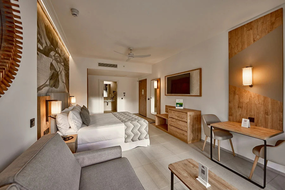 Ці номери площею 33 м² у готелі Riu Palace Mauritius ідеально обладнані для забезпечення максимального комфорту під час вашого перебування. У всіх номерах є одне двоспальне ліжко розміру "king-size" (180x200 см) або два односпальні ліжка (110x200 см), зона відпочинку з диваном або розкладним диваном, кондиціонер, стельовий вентилятор, міні-бар, диспенсери для напоїв, кавоварка, супутникове телебачення та потокові сервіси, сейф та балкон або тераса.
