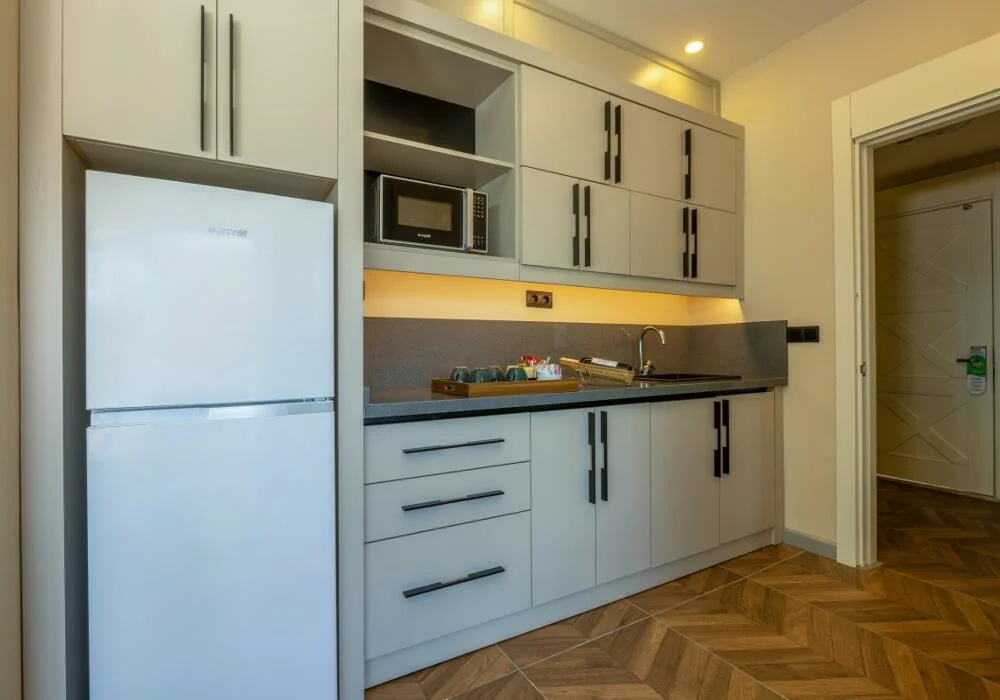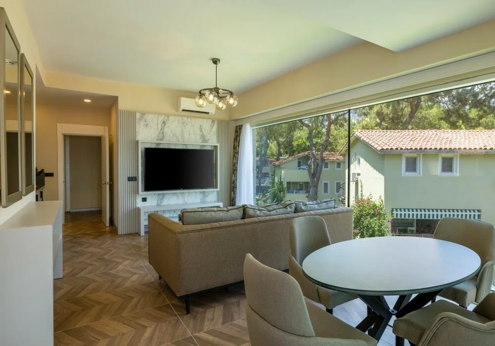 Підлога в кімнатах ламінат. У кімнаті є система замків з картками, 2 спліт-кондиціонери, сейф, РК-телевізор із супутниковими каналами та музичним мовленням, міні-бар, телефон з прямим набором номера та детектор диму. Ванні кімнати оснащені душем, телефоном та феном. Апартаменти складаються з 2 спалень та 1 вітальні