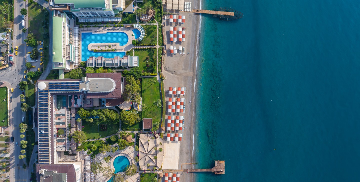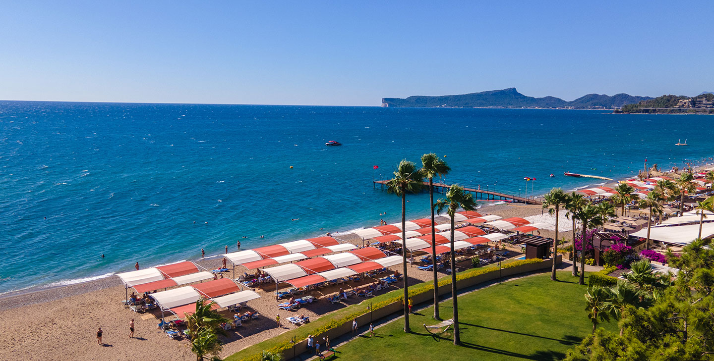 Власний піщано-гальковий пляж знаходиться поруч з готелем (1-я лінія, за 20 м.).