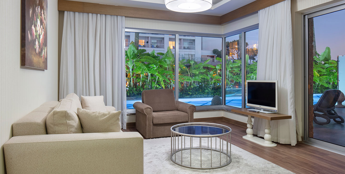 В готелі є номери для людей з інвалідністю, спеціальний ліфт в басейні, спеціальний вхід на пляж, є рампи, надаються крісла колісні.