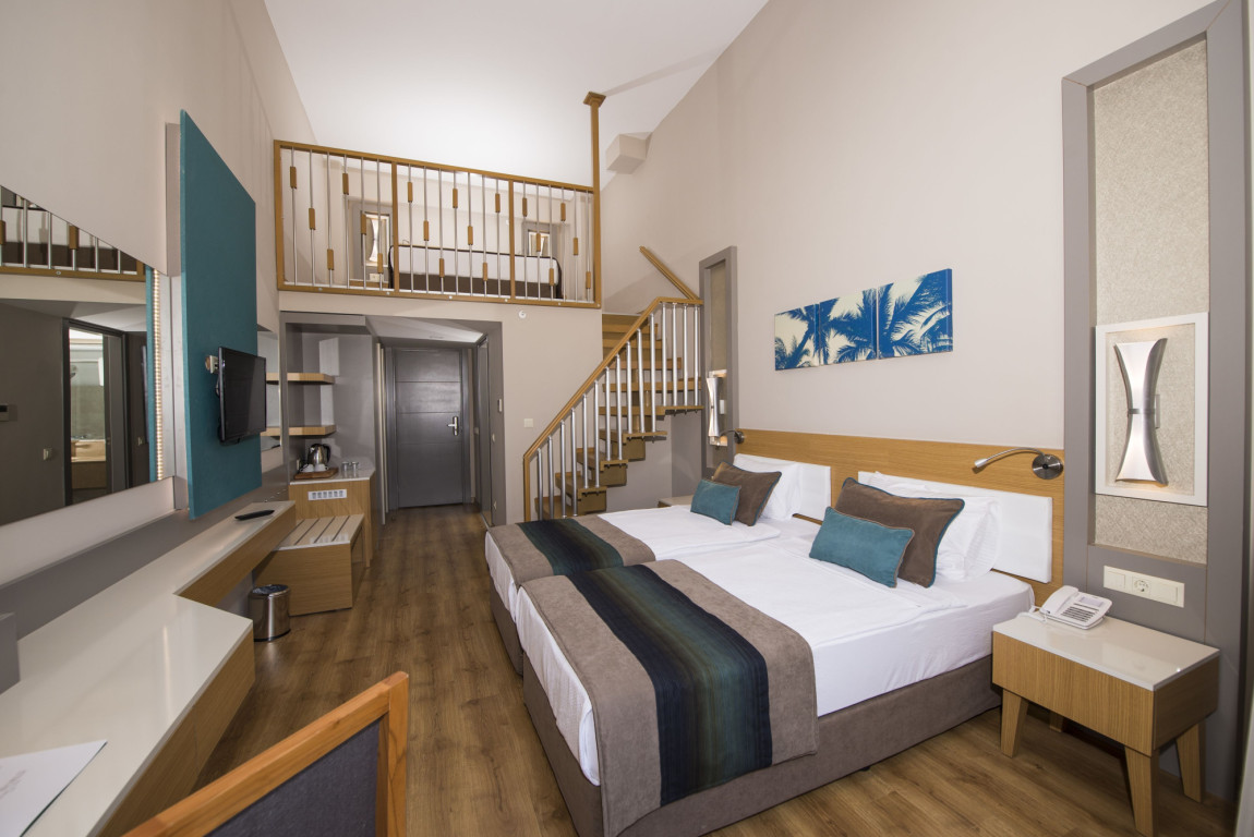2-поверховий номер, 2 кімнати без міжкімнатних дверей (двоспальне ліжко + 2 односпальні)