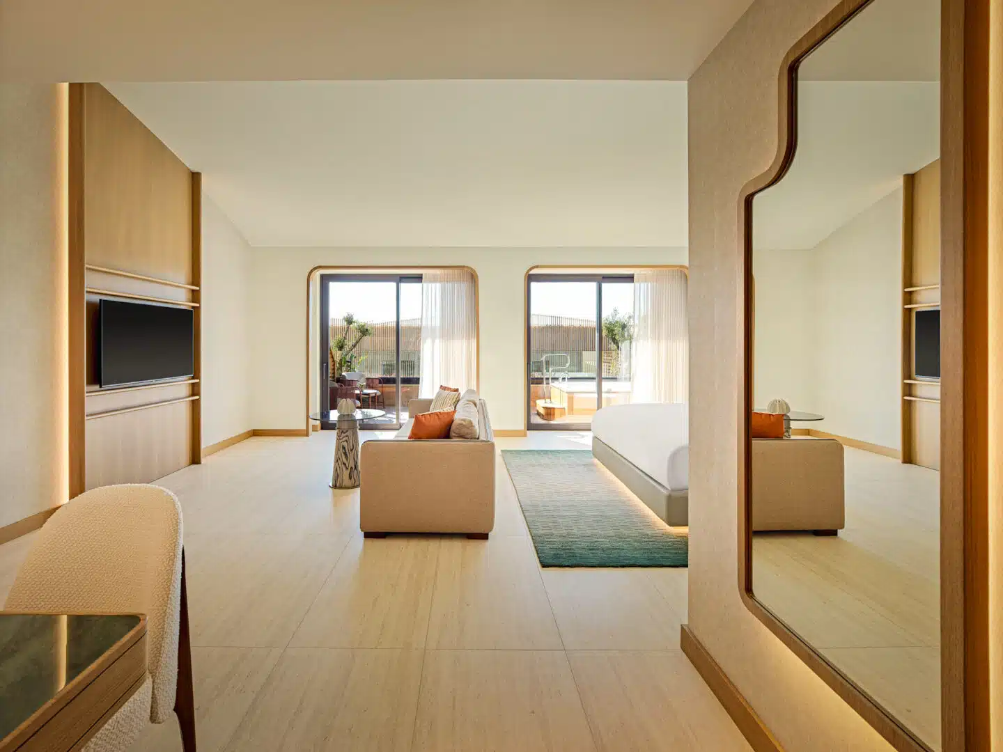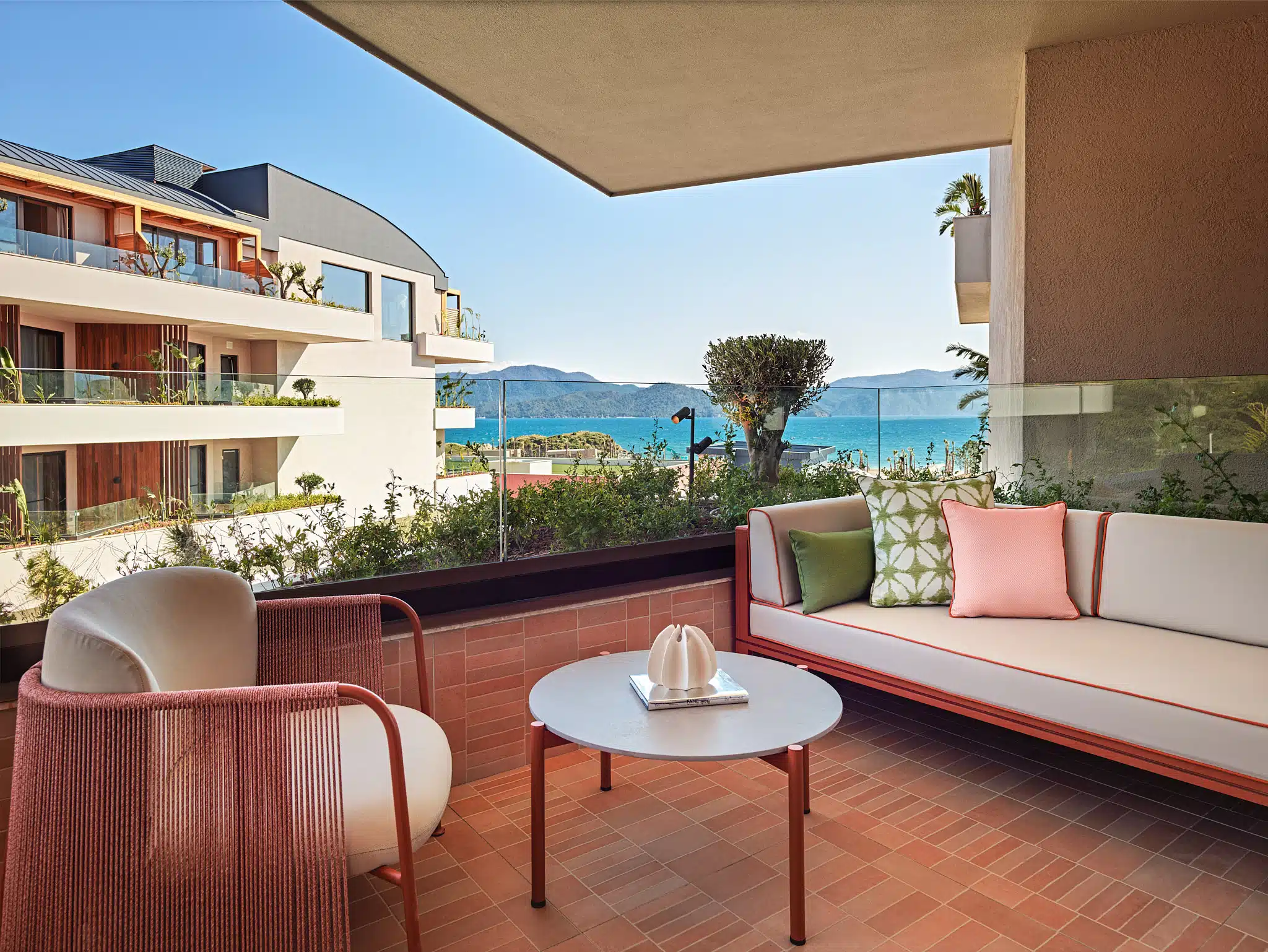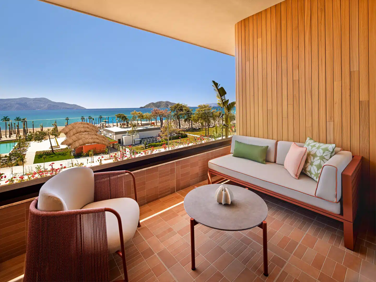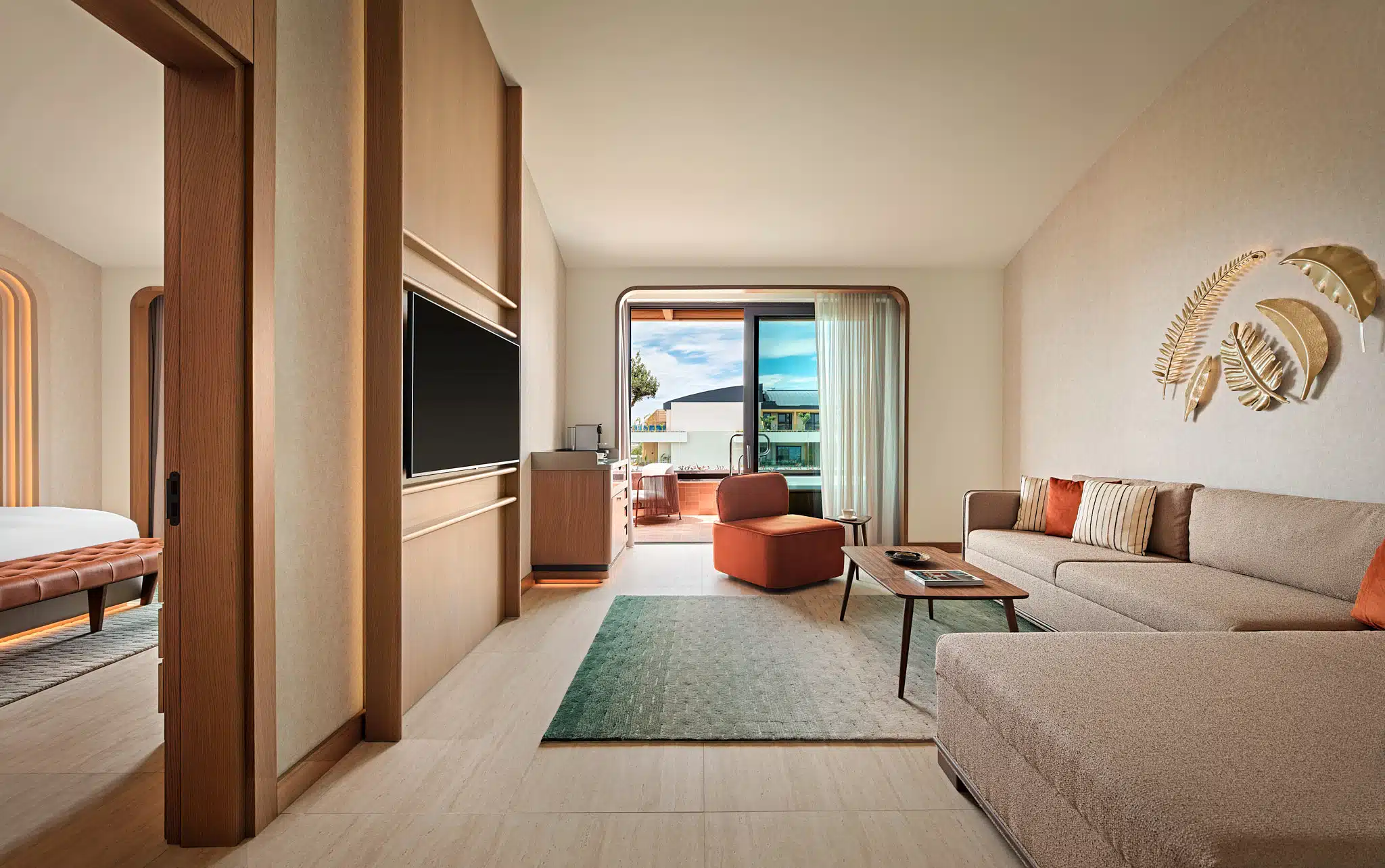 Номер XO Cape Arna Deluxe виходить за рамки стандартних номерів завдяки просторому дизайну, світлій вітальні, балкону з видом на море та власному міні-саду, що бездоганно поєднує комфорт з природою. Завдяки сучасному дизайну та спокійній атмосфері, він пропонує незабутні враження від відпустки