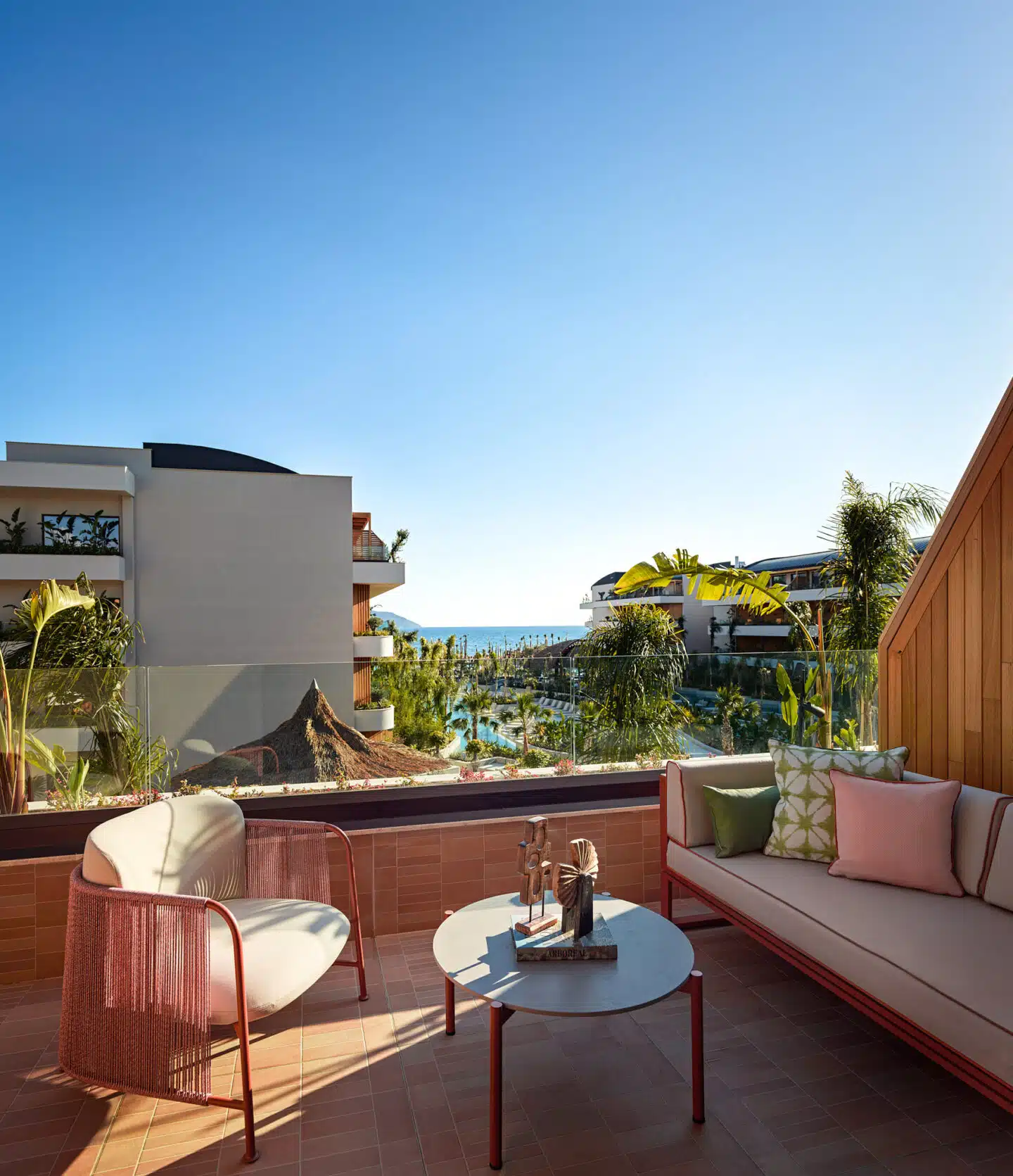 Сімейний люкс з терасою та видом на море площею 160 м². З 1 французьким ліжком + 2 односпальними ліжками, кріслом Josephine, 1 вітальнею, 2 спальнями та 2 ванними кімнатами.