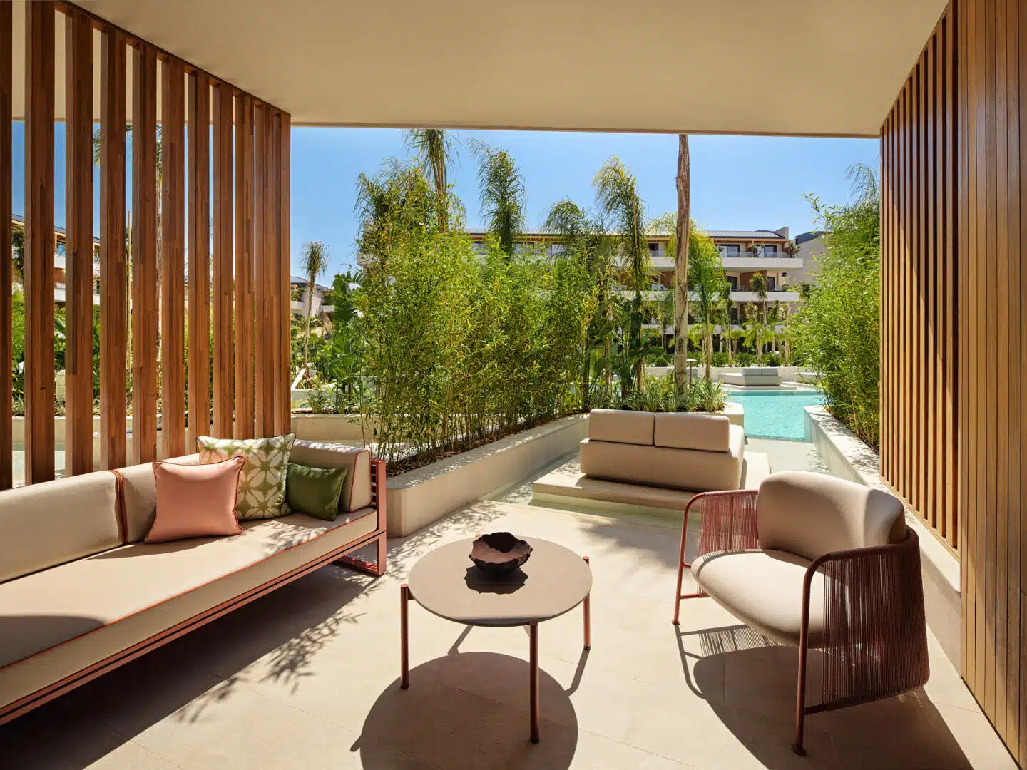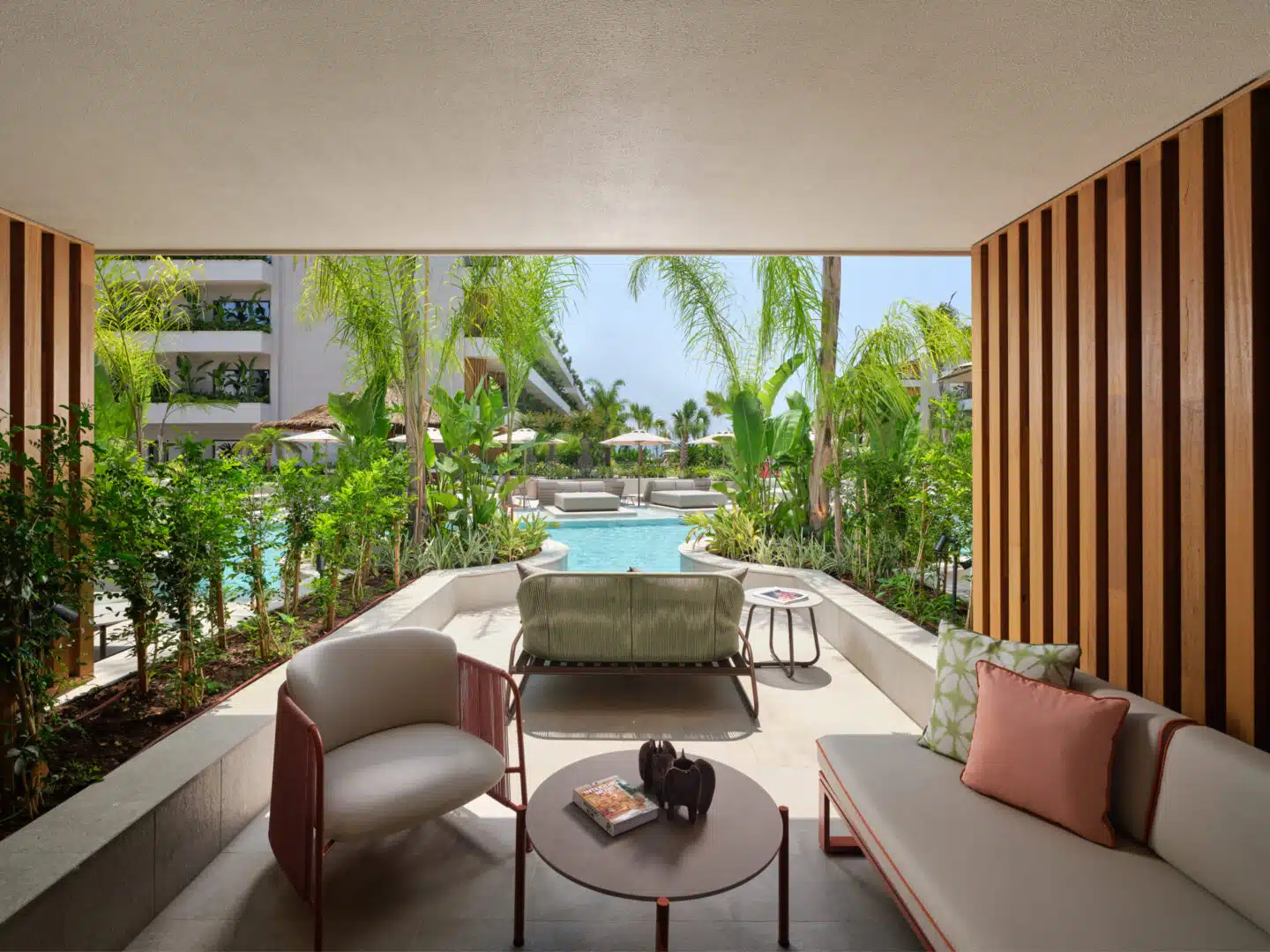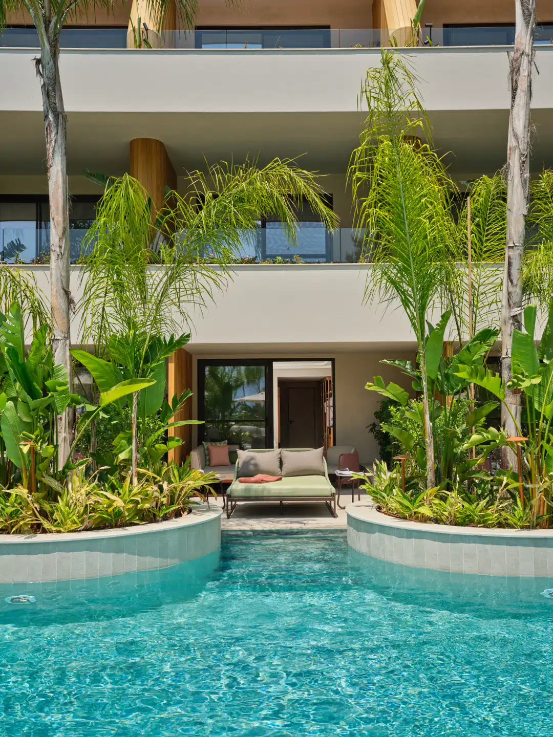 Сімейний номер XO Cape Arnna з доступом до басейну пропонує площу 62-72 м² та призначений для сімей, які шукають комфорту та відпочинку. Він має 2 спальні, 1 ванну кімнату, прямий доступ до басейну та приватну сонячну терасу, що забезпечує розкішне та приємне перебування. Сучасний дизайн гарантує спокійний та освіжаючий відпочинок.