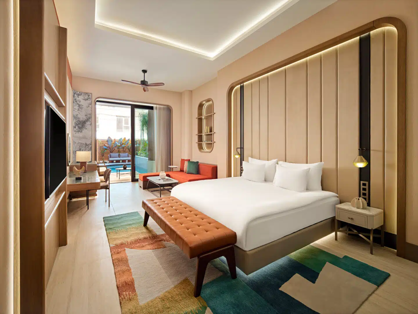 Напівлюкс XO Cape Arnna поєднує комфорт і природу зі спальнею, приватним балконом і міні-садом. Завдяки просторому дизайну та сучасному декору, цей люкс пропонує спокійний відпочинок, що робить його ідеальним вибором для гостей, які шукають як розкоші, так і відпочинку.