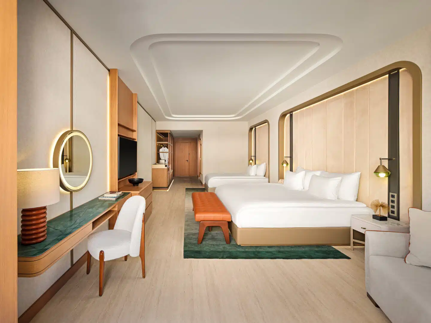 Сімейний люкс XO Cape Arnna Grand пропонує просторий комфорт площею до 115 м², призначений для великих сімей. Завдяки просторому дизайну, сучасному декору та просторій житловій зоні, він забезпечує ідеальний баланс відпочинку та зручності, гарантуючи спокійне та приємне перебування для всіх гостей.