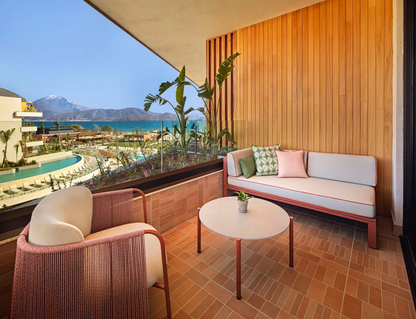 Номери готелю XO Cape Arnna з прямим виходом до басейну пропонують простору та комфортну зону відпочинку. Ці номери мають власний балкон із зоною для засмаги та забезпечують легкий доступ до бару біля басейну, що гарантує приємний та розслаблюючий відпочинок протягом дня.