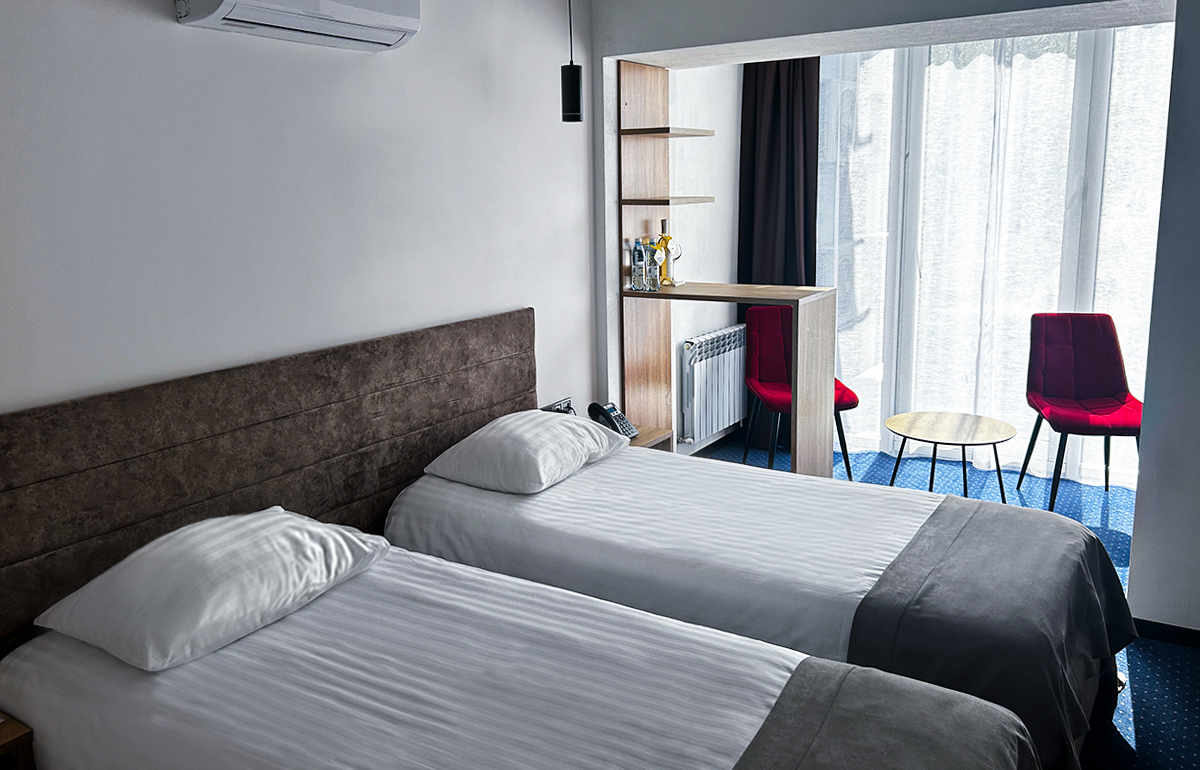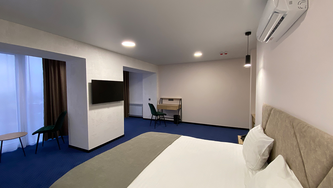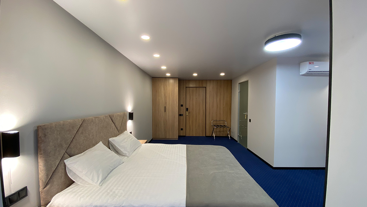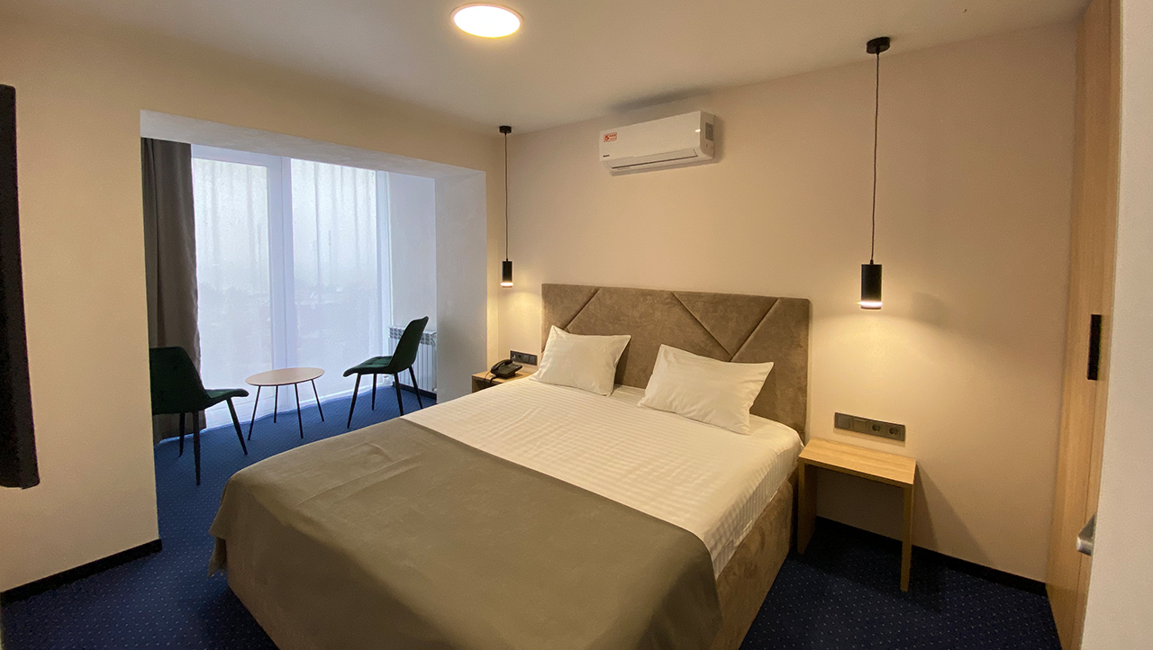 Номери готелю виконані у сучасному мінімалістичному стилі та укомплектовані усім необхідним для комфортного проживання гостей.