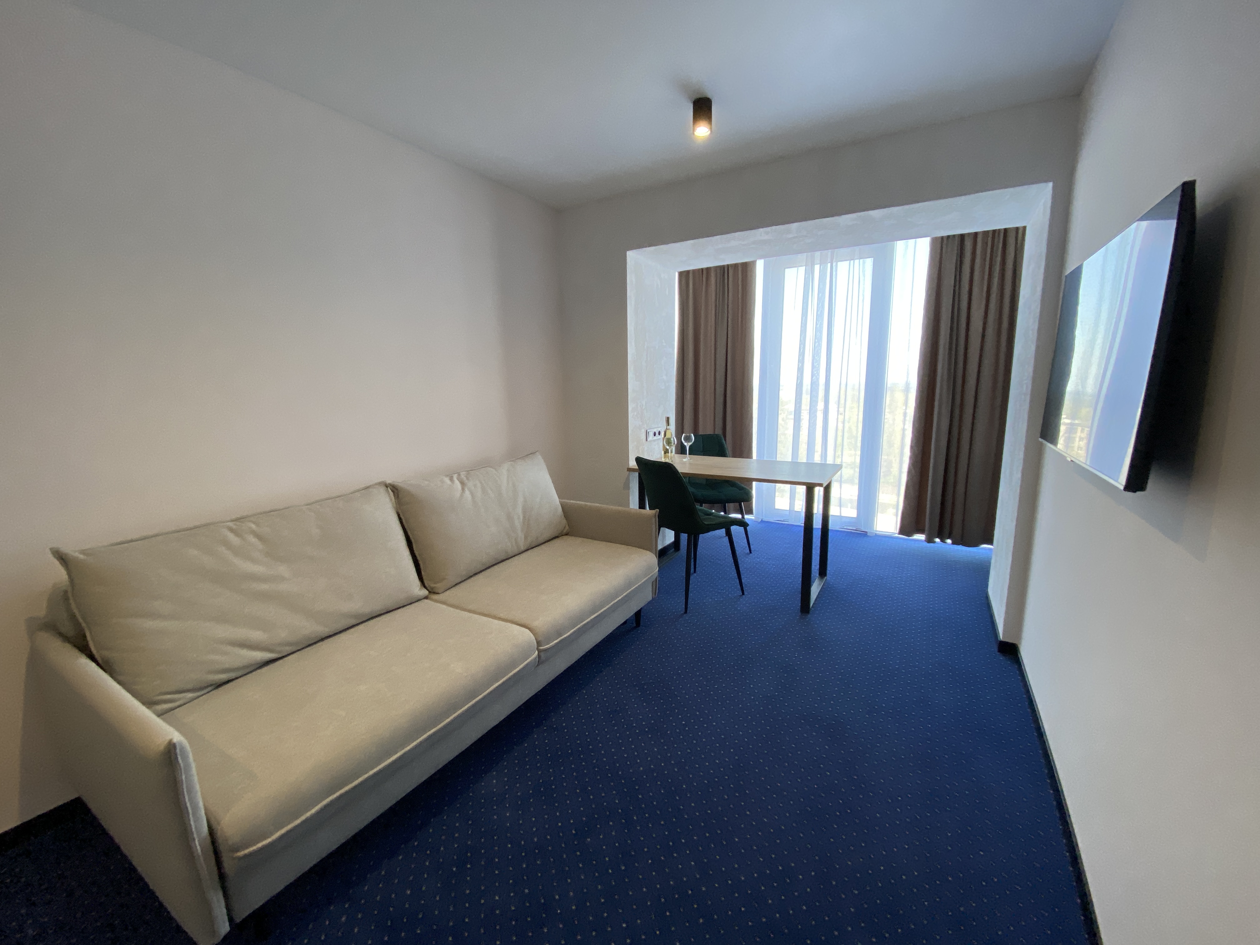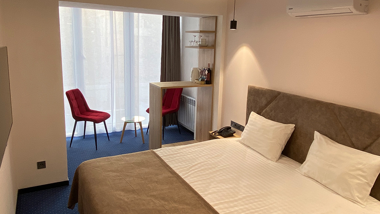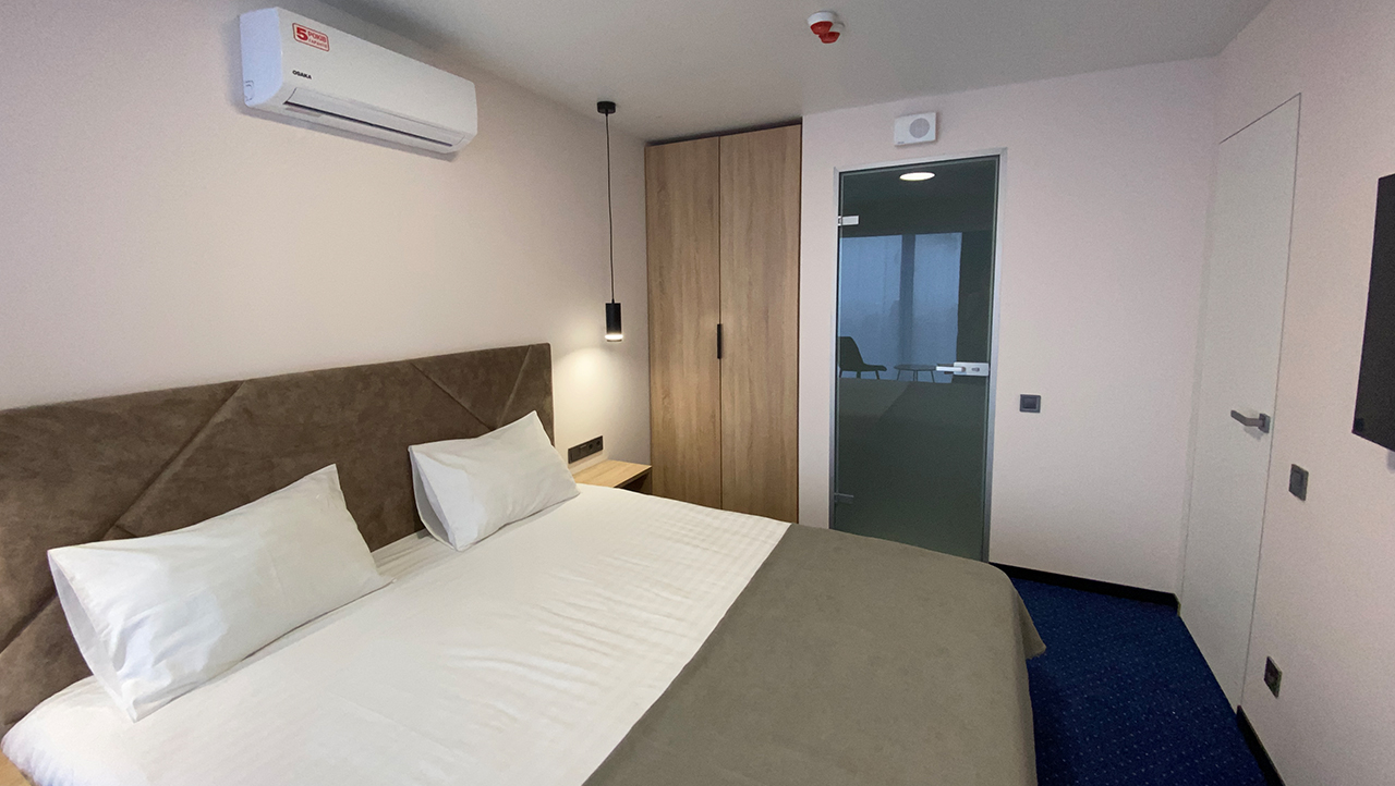 Номери готелю виконані у сучасному мінімалістичному стилі та укомплектовані усім необхідним для комфортного проживання гостей.