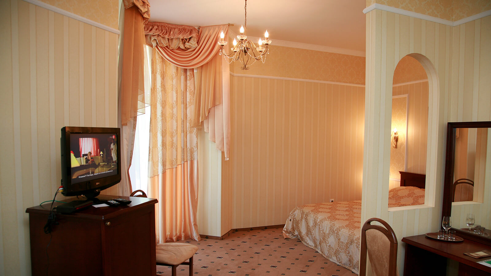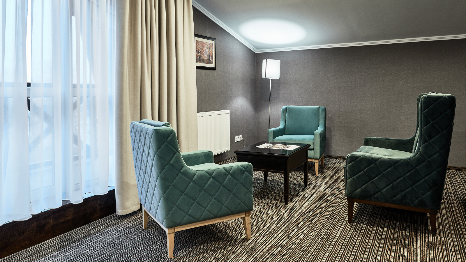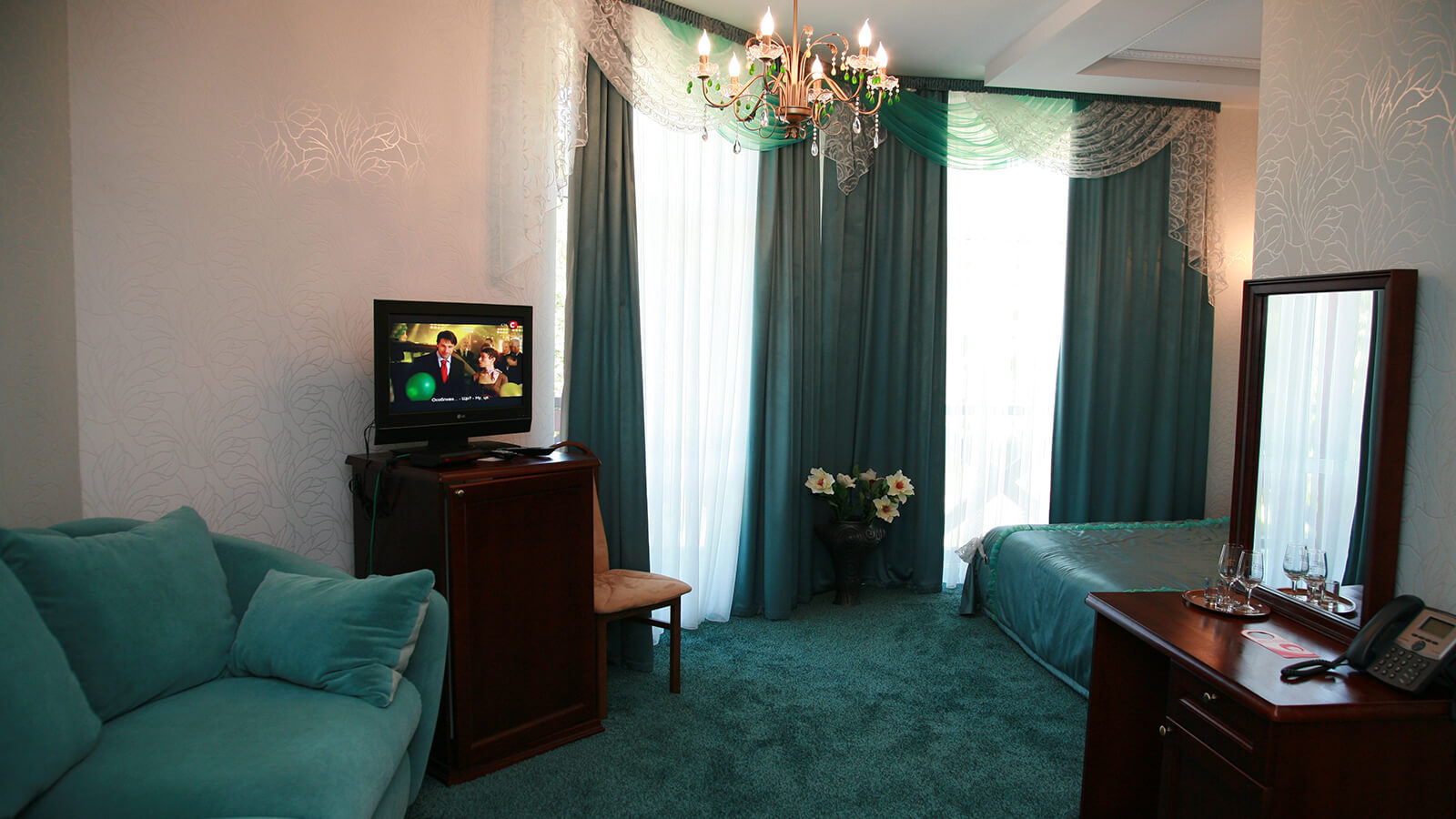 До послуг гостей 79 сучасних номерів різних категорій, ресторан європейської та української кухні з красивим VIP-залом, стильний гриль-бар, конференц-зали на 60 осіб і 100 осіб, переговорну кімнату, банкетний зал, літню терасу і фінську сауну та парковку на території готелю та при в'їзді на територію на 55 місць.