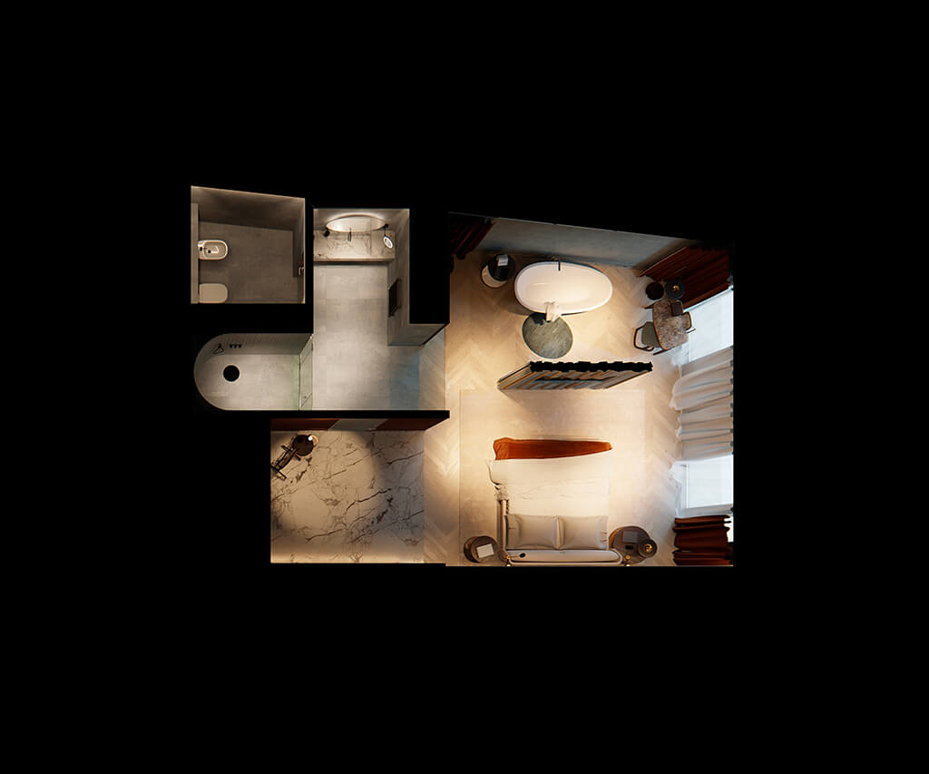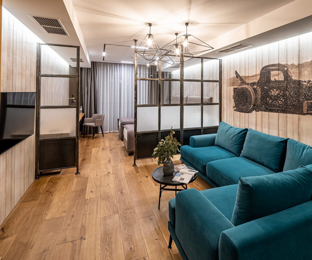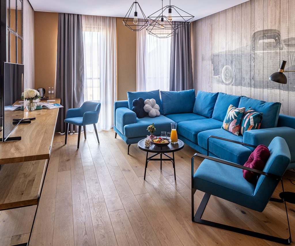 Ці кімнати мають не тільки особливий та стильний інтер'єр, захоплюючий краєвид на місто, але й дуже затишну атмосферу. Для відпочинку – гарна м'яка частина. Для вирішення термінових справ – простора робоча зона.