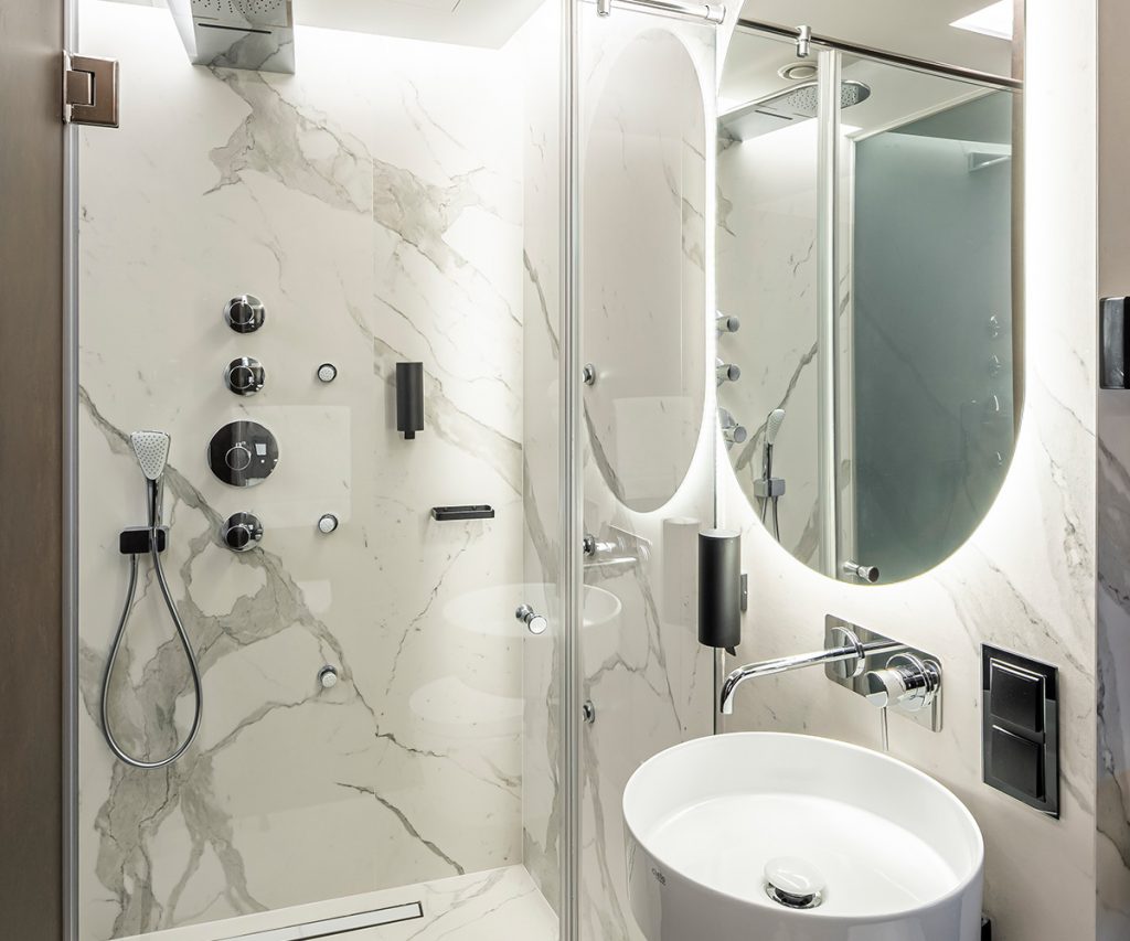 Кімната з найромантичнішим наповненням: тропічний душ з різноманітними бічними масажними струменями, джакузі, великий плазмовий екран – ідеальне місце для прекрасного проведення часу. А світанки в цій кімнаті будуть для вас особливими.