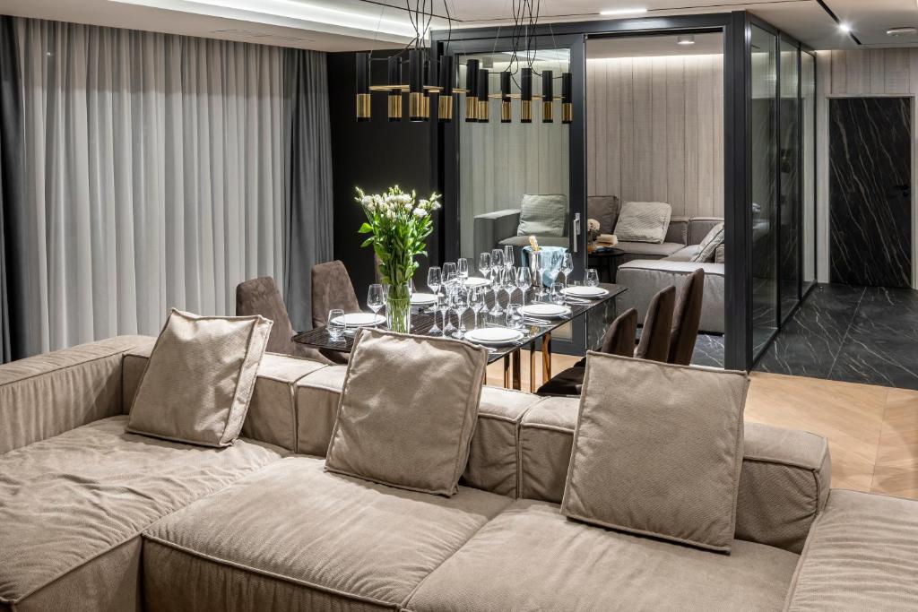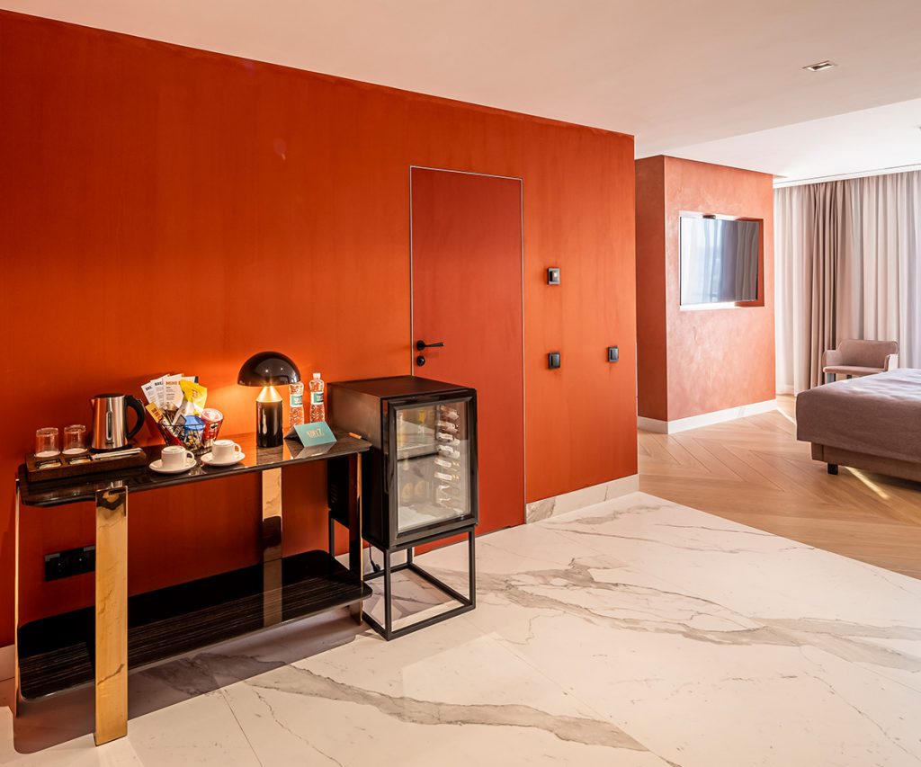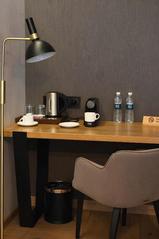 Вишуканий номер преміум-класу – кожен елемент, кожна деталь підібрані з особливою ретельністю та увагою. Номер стане чудовим місцем: для вашого відпочинку по-королівськи; для ділових переговорів; місцем незабутніх приватних вечорів та вечірок. Унікальною родзинкою цього номера є тераса: з видом на місто Львів та приємною зоною відпочинку.