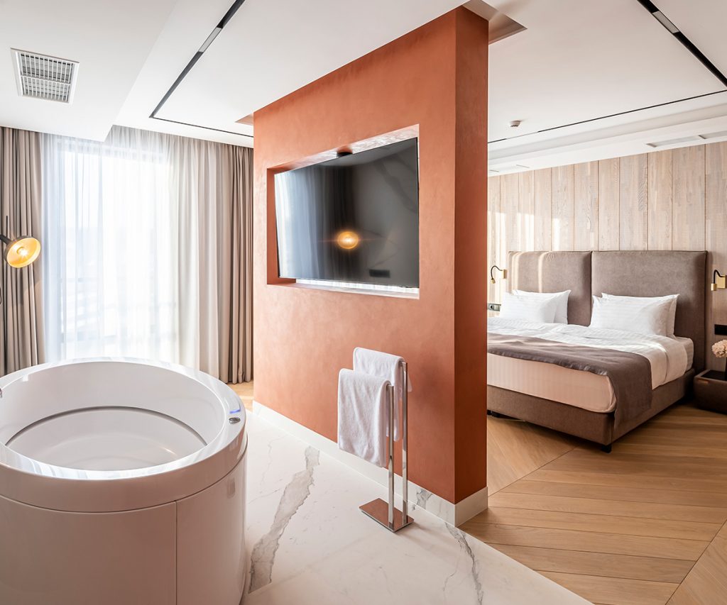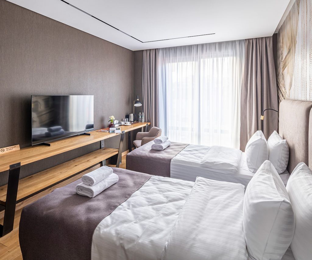 Затишні номери допомагають зняти втому та розслабитися після ділових зустрічей чи поїздок.