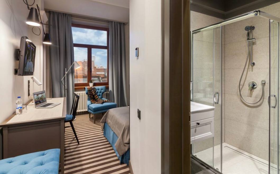 Одномісний номер готелю "PANORAMA Lviv Hotel" забезпечить Вам спокійний відпочинок подалі від вуличного шуму.