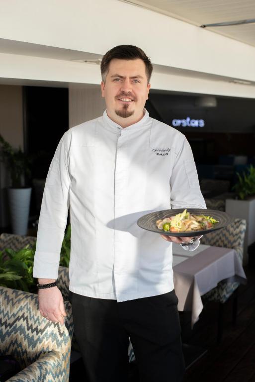 Гостям пропонуються сніданки, а також додаткові формати харчування: бізнес-ланчі, кава-брейки, фуршети та бенкети. Це дозволяє організувати як індивідуальне харчування під час проживання, так і обслуговування ділових заходів чи зустрічей.