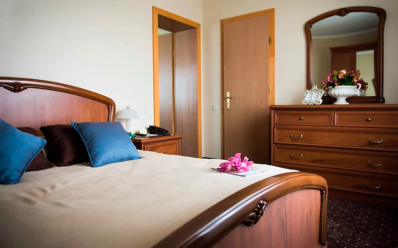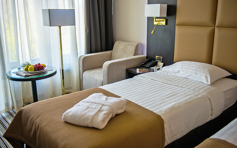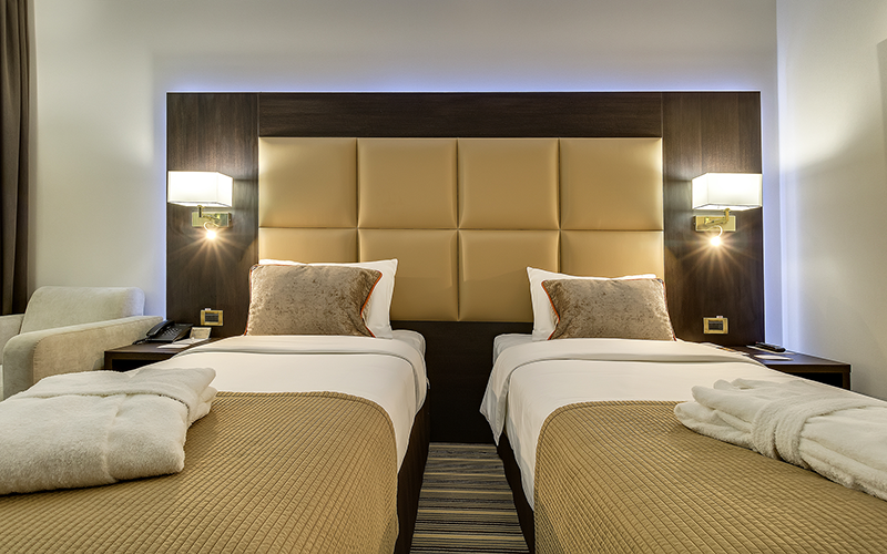 Можливе розміщення в номері з одним широким ліжком або двома роздільними.