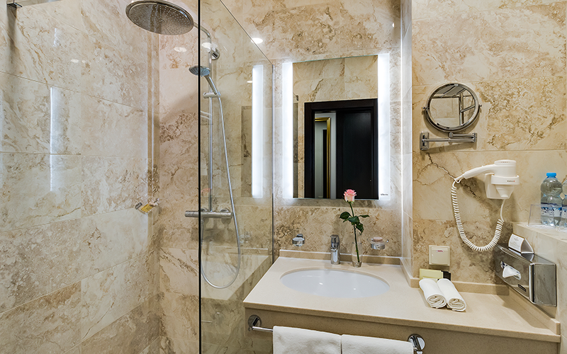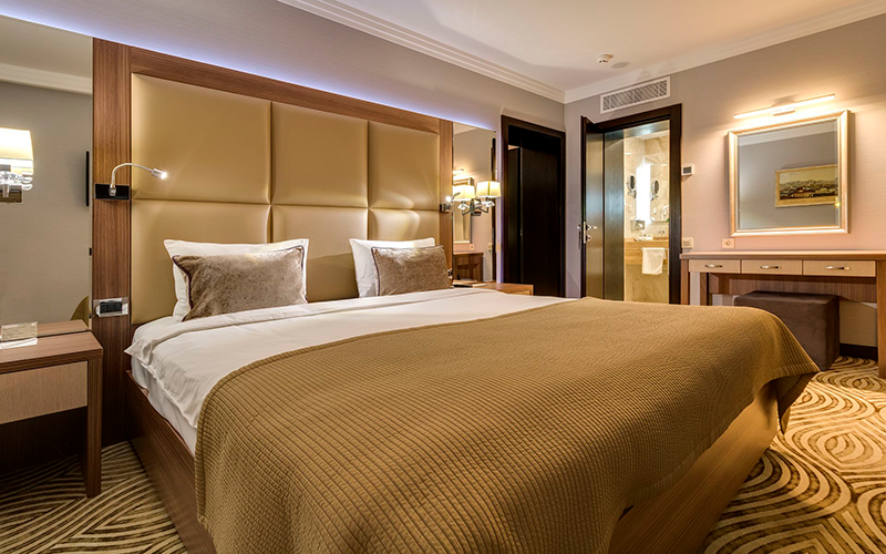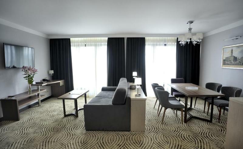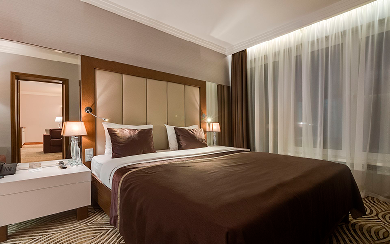 З вікна якої відкривається чудовий панорамний вид. Номери цієї категорії мають можливість додаткового внутрішнього сполучення з сусіднім номером категорії «Прем’єр». Вдвічі більше простору, можливість милуватися історичною панорамою міста та додаткові вигоди зроблять ваше перебування в готелі незабутнім.