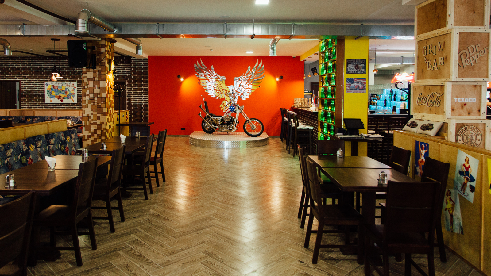 American Bar&Grill, або як скорочено називаю його AmBar, — це яскравий, оригінальний і такий особливий, як і сама Америка, заклад з істинно американськими бургерами, соковитими стейками, крафтовим пивом, з байком Harley-Davidson та атмосферною музикою.