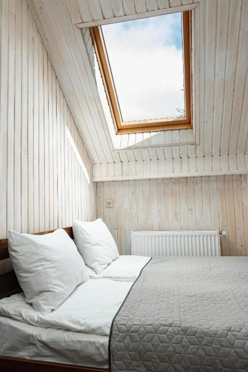 Затишний мансардний номер із видом у небо через мансардні вікна.