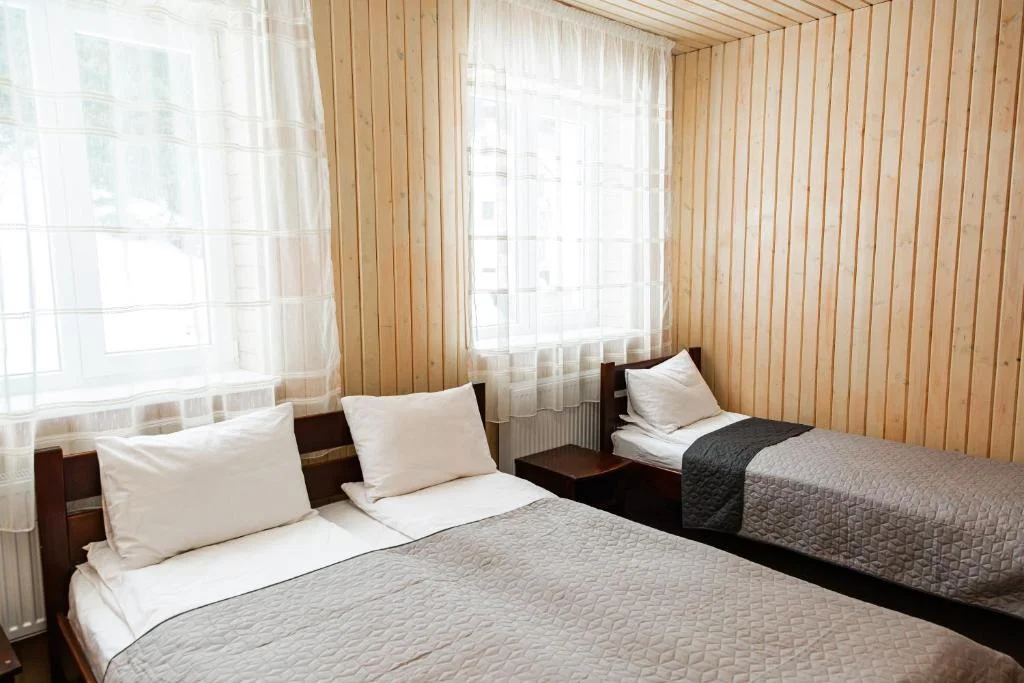 У номері — опалення, супутникове ТБ, тумбочки, шафа для одягу та вішалки. У власній ванній кімнаті: душ, санвузол, рідке мило, туалетний папір і по два рушники на гостя.