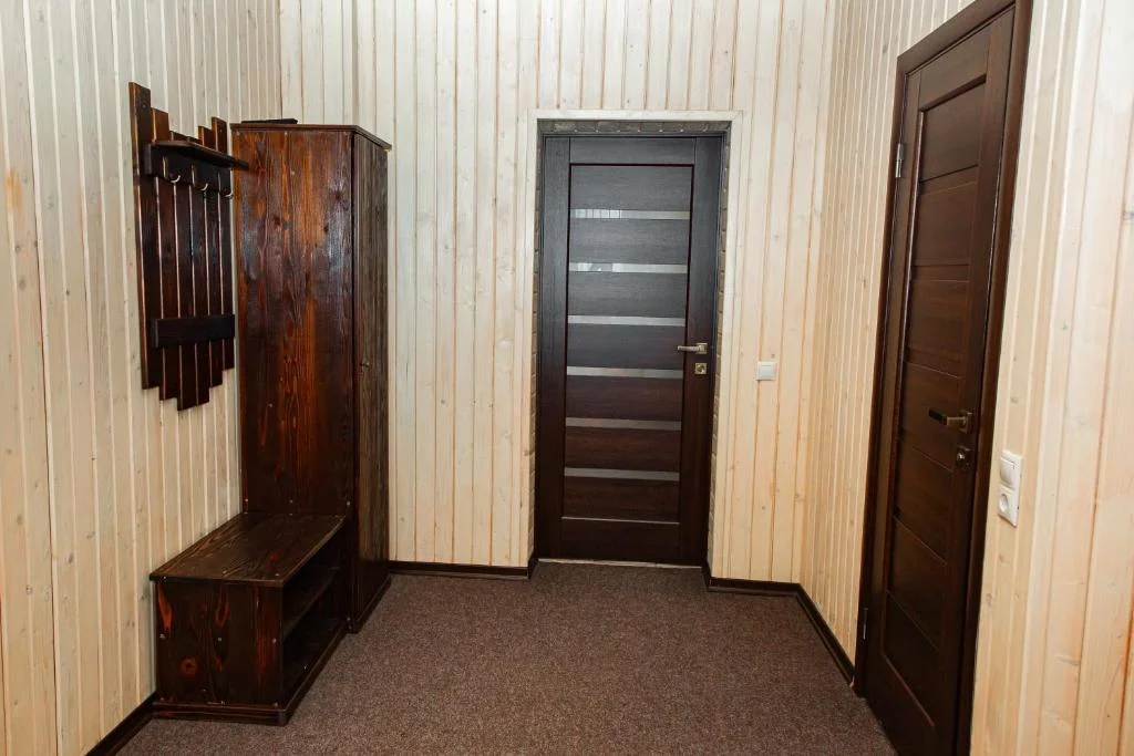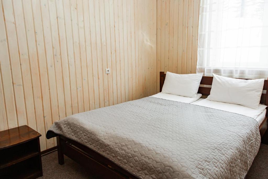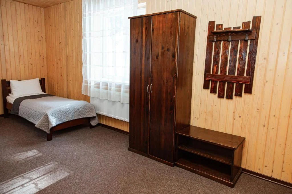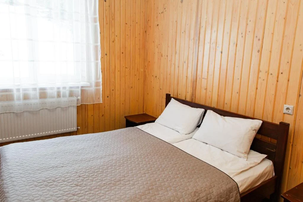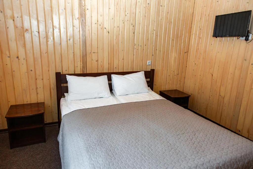 У номері — зручне двоспальне ліжко, опалення, тумбочки та шафа з вішалками.