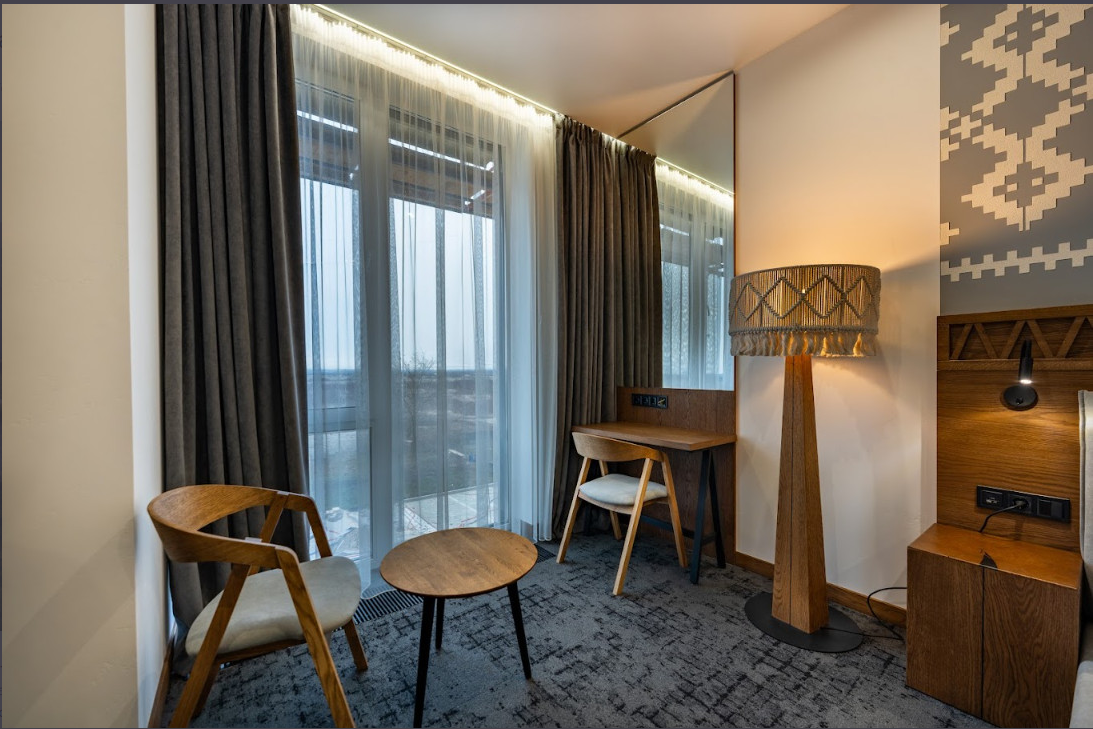 Більше простору, зона відпочинку з диваном, сучасний санвузол, балкон або панорамні вікна (у частині номерів).
