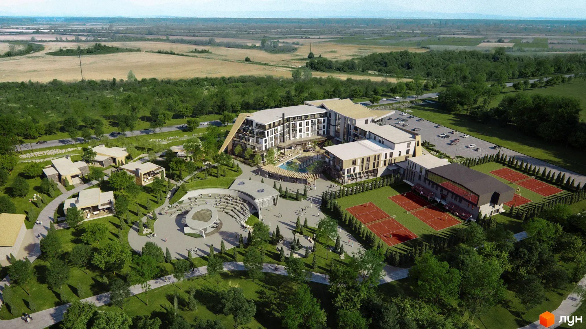 Для дорослих доступні тренажерна зала, тенісні корти, падл, пілатес-реформери, басейн і SPA-комплекс із саунами та чанами. Влітку на гостей чекає аквапарк із 10 гірками, дитячою зоною та атракціонами для любителів екстриму.