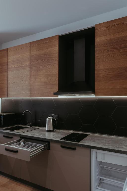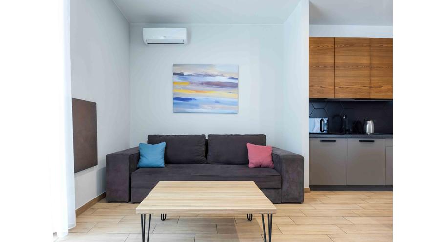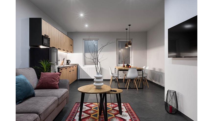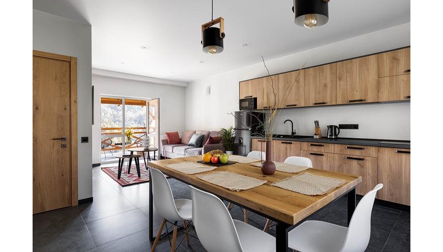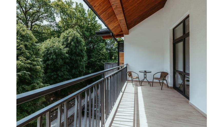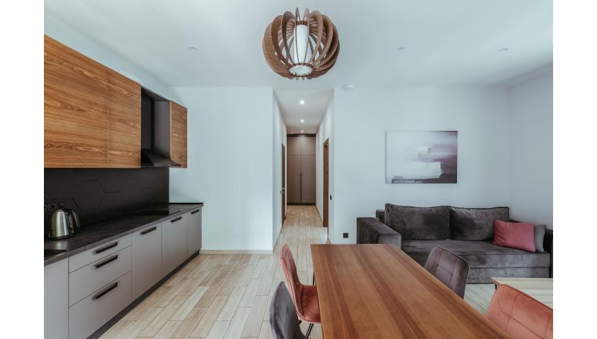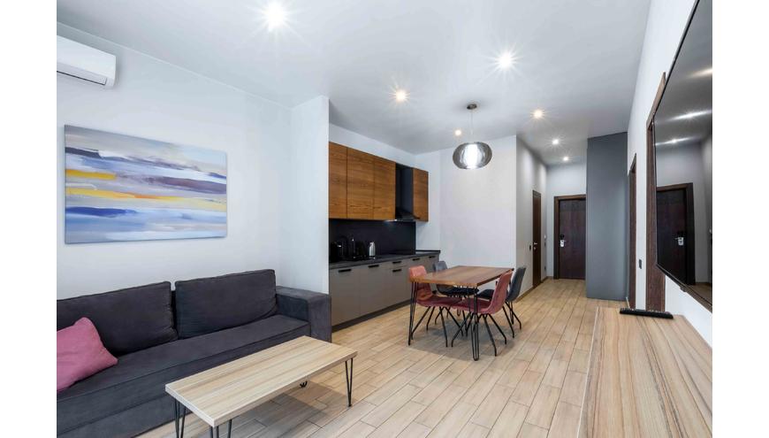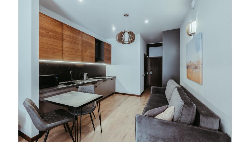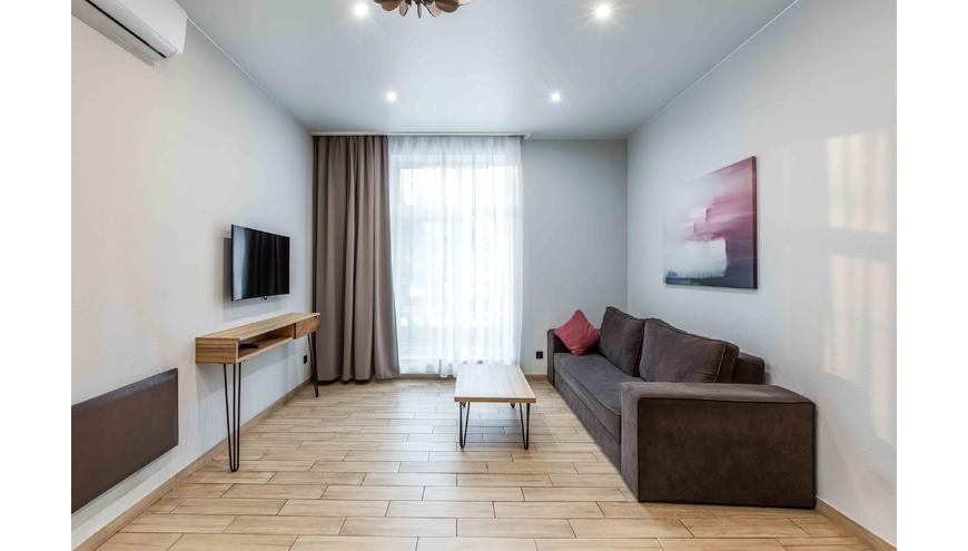 Готельний комплекс складається з 60-ти просторих апартаментів зі зручним, продуманим плануванням, створених з урахуванням будь-яких потреб гостей, з використанням вишуканого авторського дизайну, кращих екологічних матеріалів, якісних меблів, сучасної техніки та комплектуючих відомих світових виробників.