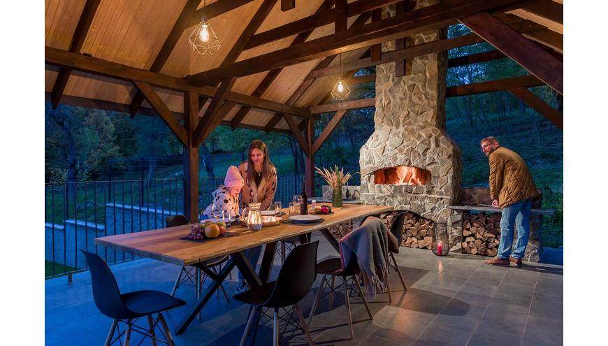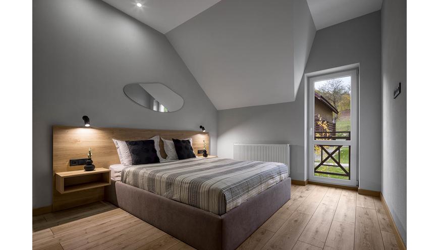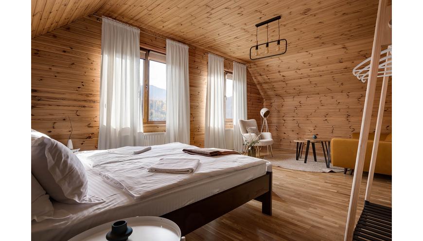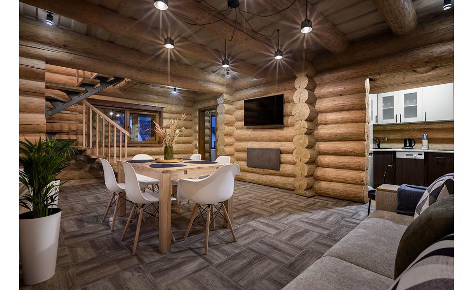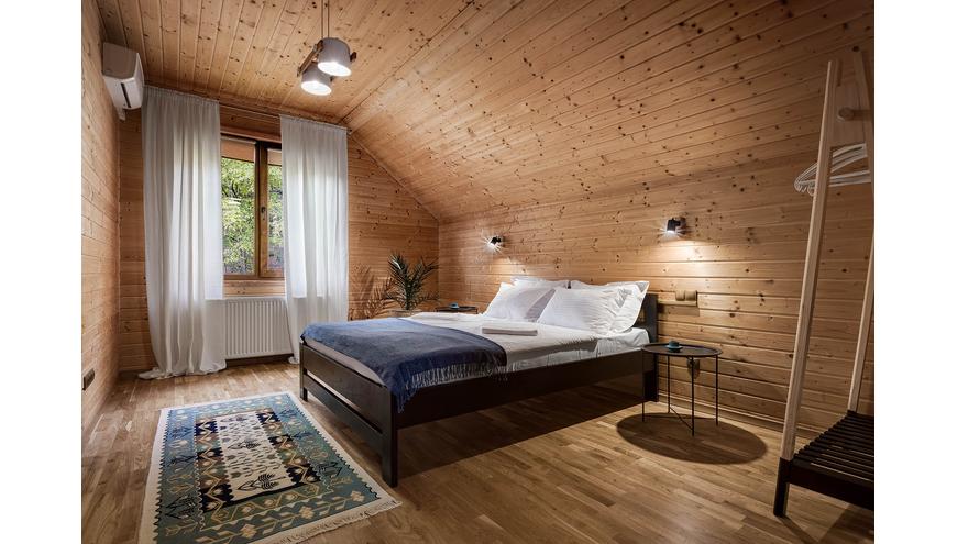 Комфортне дерев’яне шале для відпочинку компанією або ж великою родиною, площею 120 м. кв. Шале складається з двох рівнів.