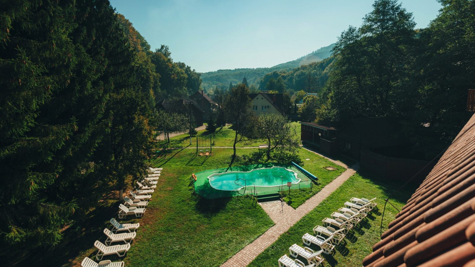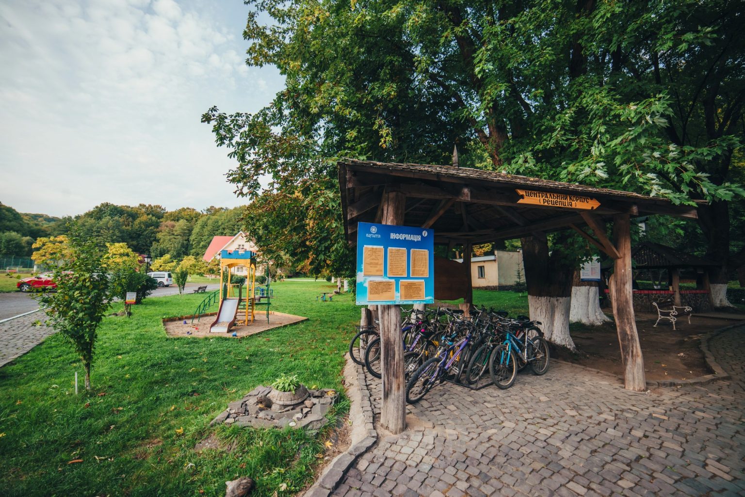 Простора закрита територія посеред букового лісу (найкраща атмосфера для людей, які хворіють на алергії та астму) – багато місця для прогулянок та розваг, ви почуваєте себе затишно і захищено. Закарпаття славиться своєю екологічною чистотою, а курорт Шаян – своїм унікальним м’яким мікрокліматом. Тут є паркінг, ставок для риболовлі, тенісний корт, літній басейн, дитячий майданчик, спортзал.