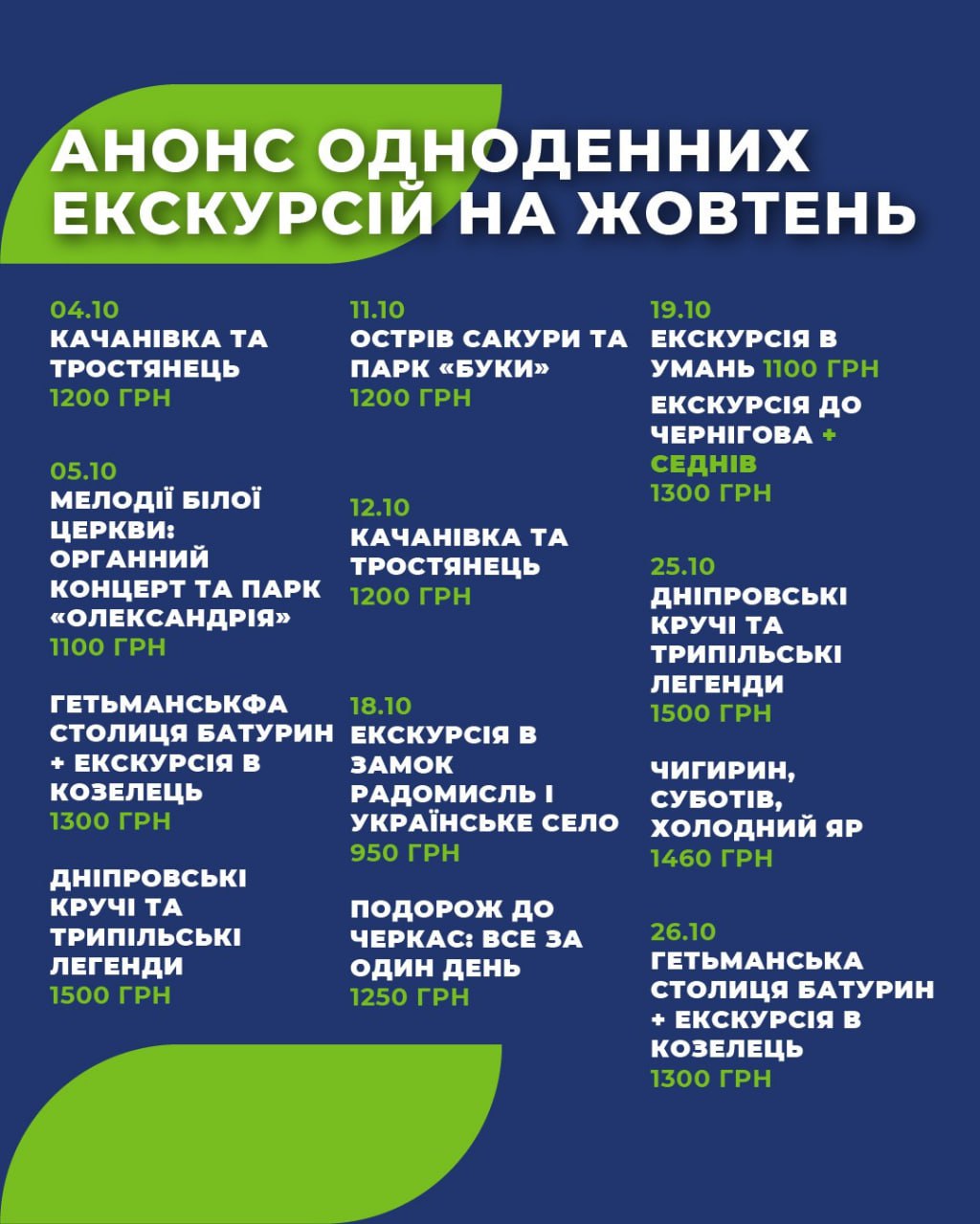 🔸 26.10 – ГЕТЬМАНСЬКА СТОЛИЦЯ БАТУРИН + КОЗЕЛЕЦЬ – 1300 грн
