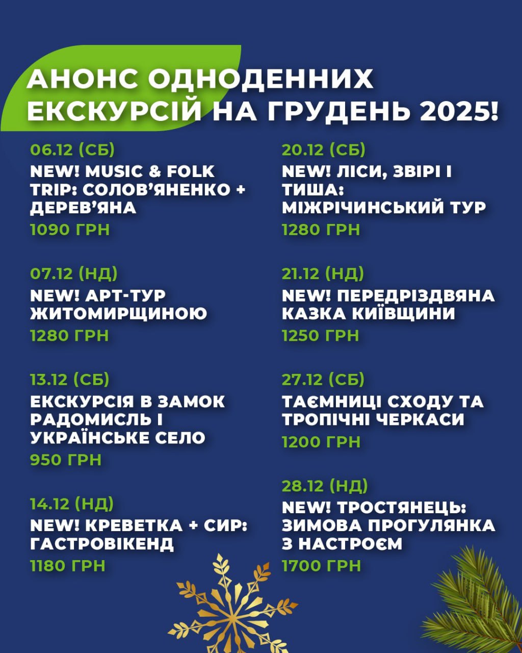 🎄 АНОНС ОДНОДЕННИХ ЕКСКУРСІЙ НА ГРУДЕНЬ 2025! 🎄